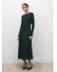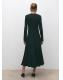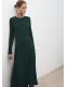 Diseño midi. Diseño evasé. Cuello redondo. Manga larga. Detalle godets. Cierre de cremallera en la parte posterior