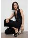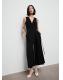 Largo Tobillero. Diseño recto. Diseño cruzado. Cuello pico. Sin mangas. Tirantes anchos. Cinturón con cierre de hebilla. Forro interior