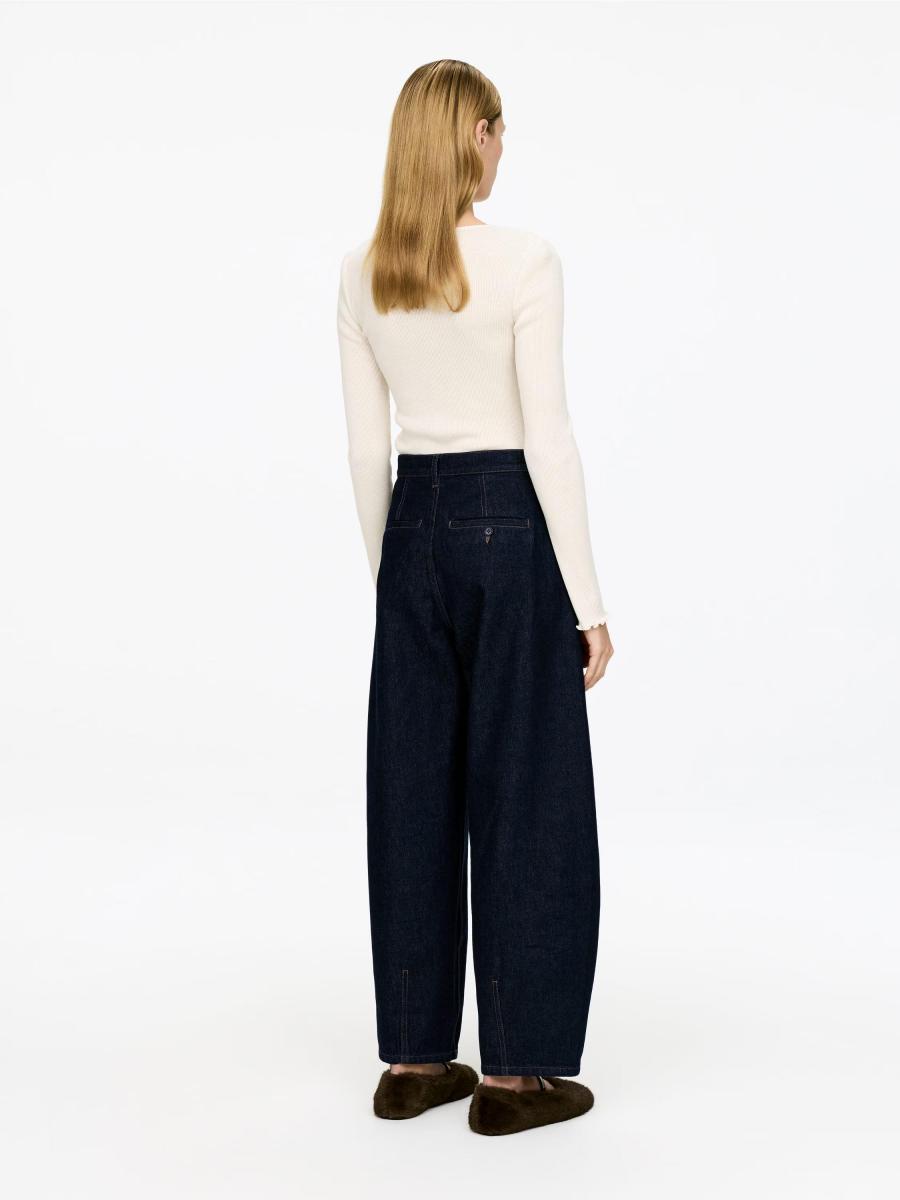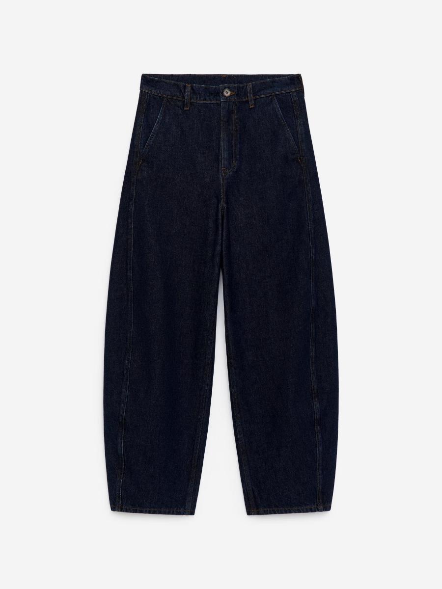Barrel-shaped denim trousers crafted from cotton. A mid-waist style with slanted side pockets, buttoned welt pockets at the back and zip closure. Inside leg length 75.5 cm (size 38).ARKET/Women's clothes/Women's trousers