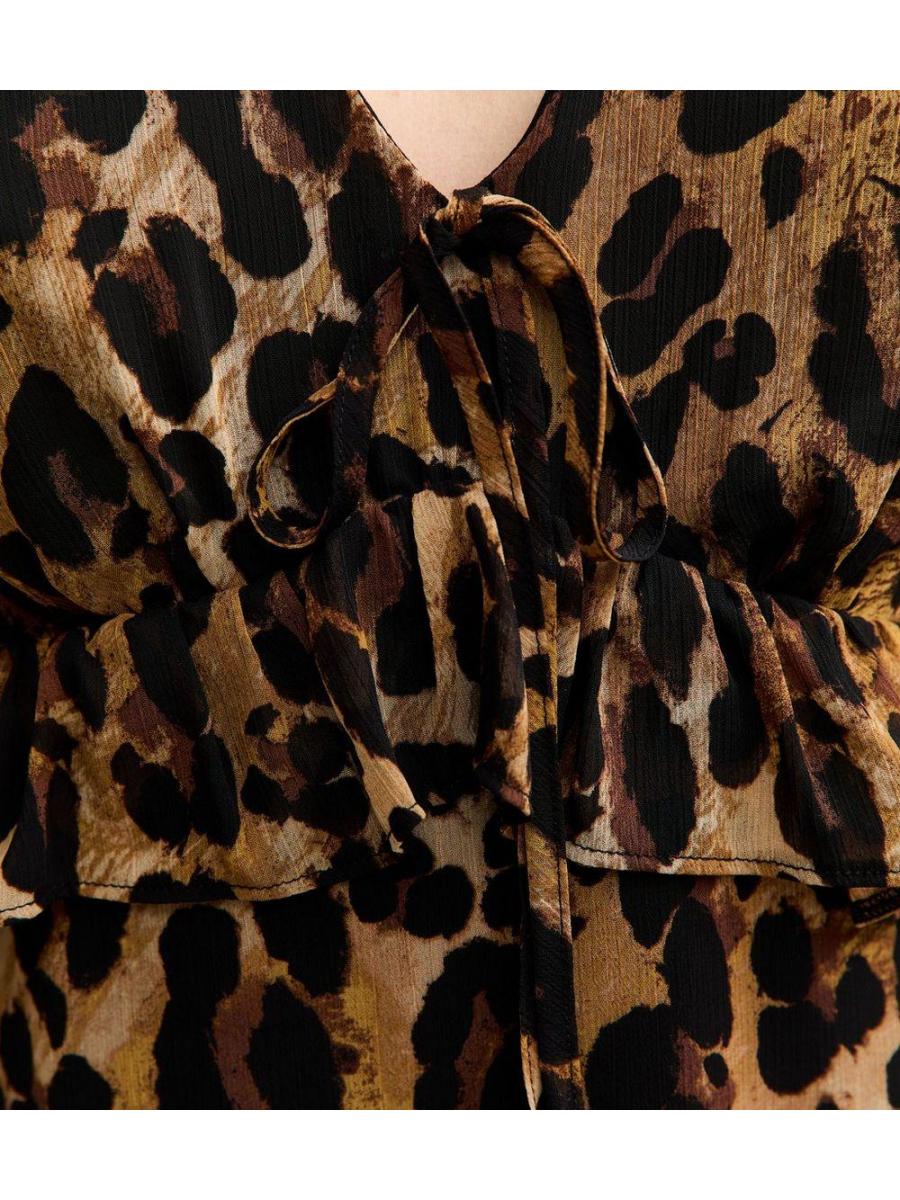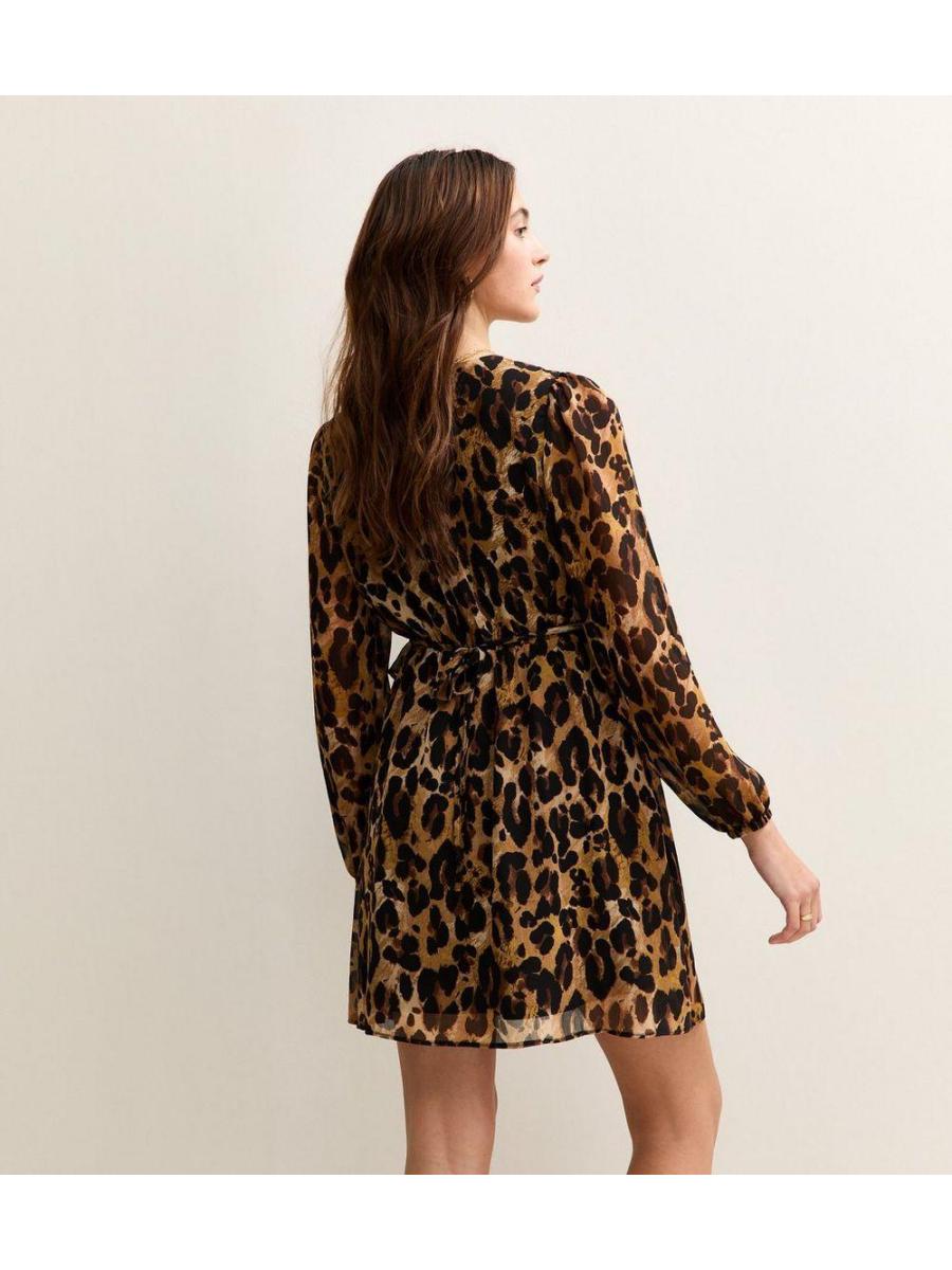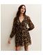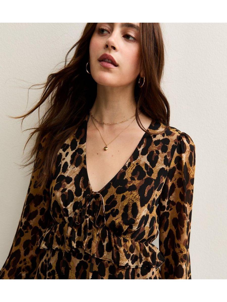 Brown Leopard Print Chiffon Long Sleeve Mini Dress