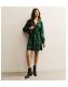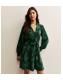 Dark Green Floral Jacquard Belted Mini Dress