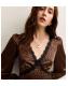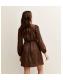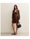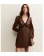 Brown Satin Animal Print Lace Trim Mini Dress