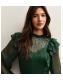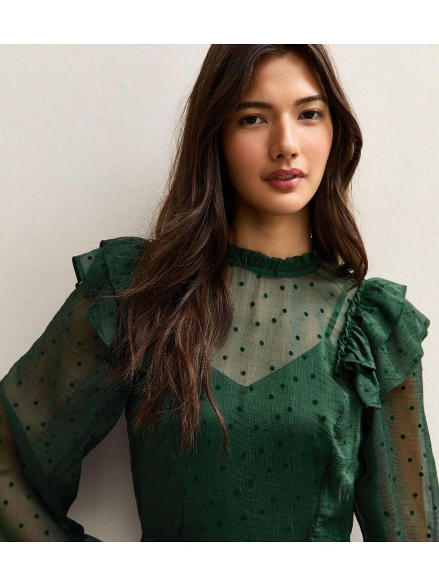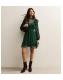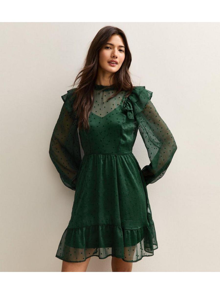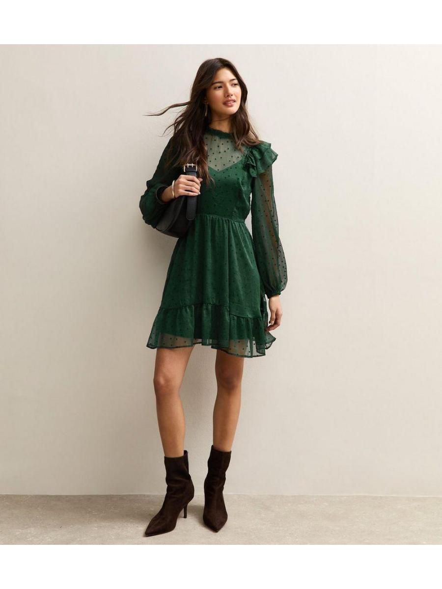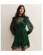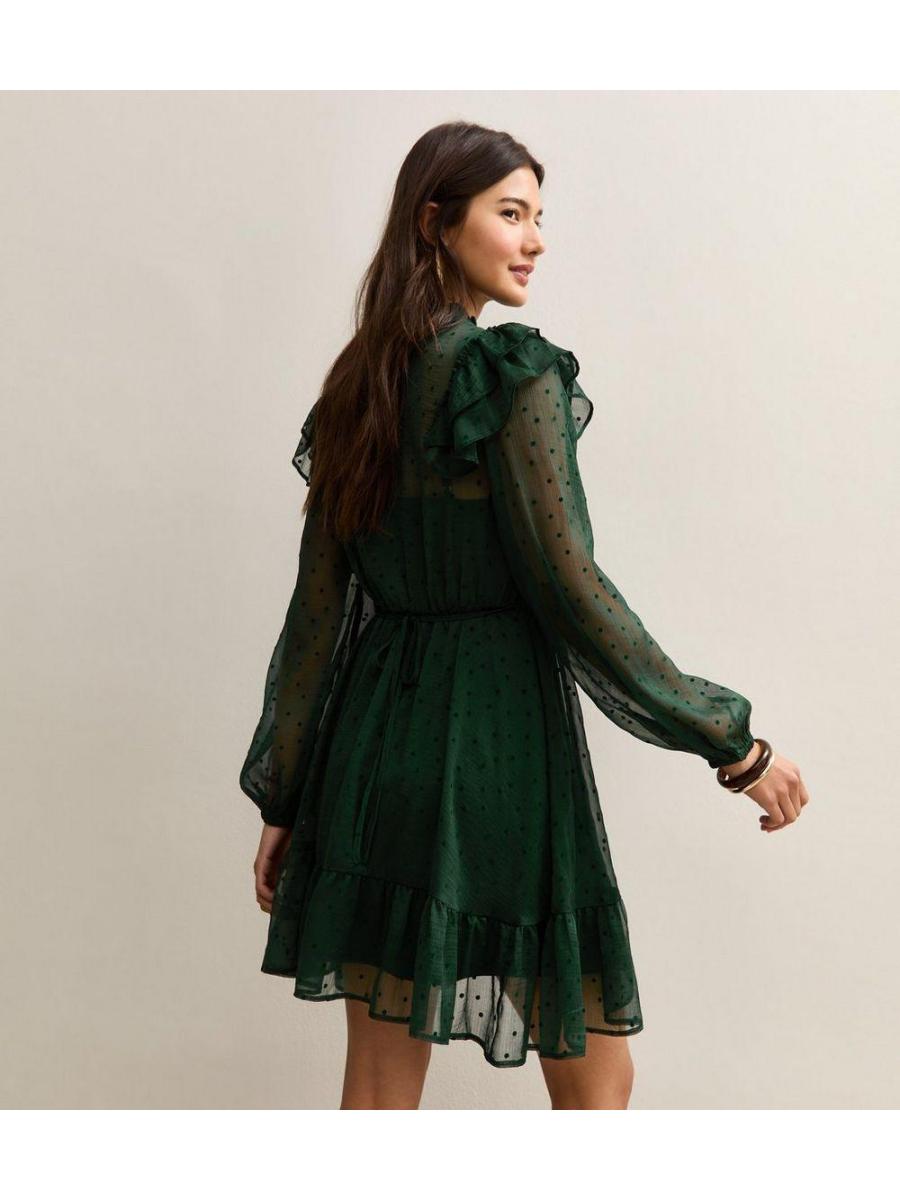 Dark Green Dobby Ruffe Long Sleeve Mini Dress