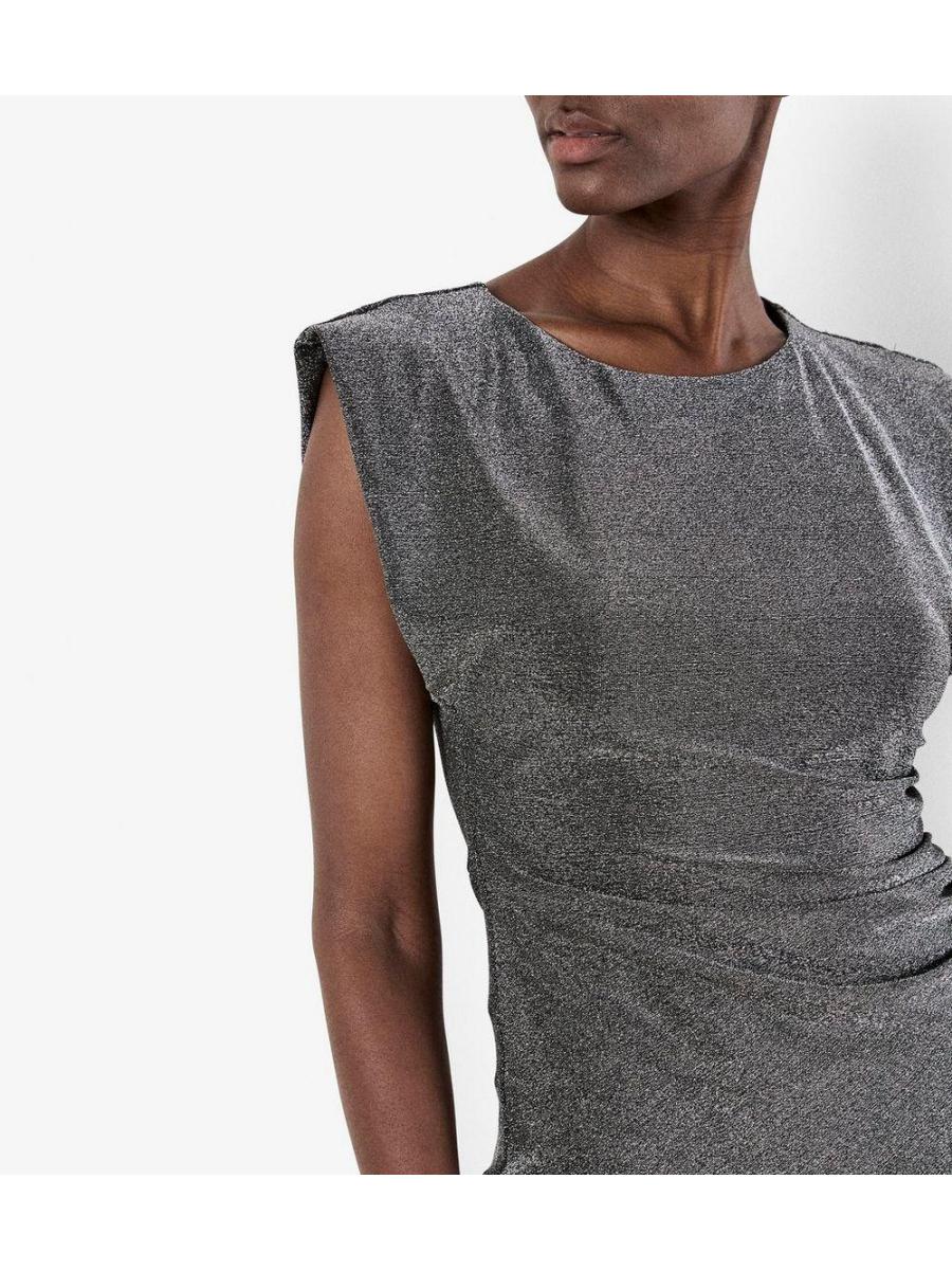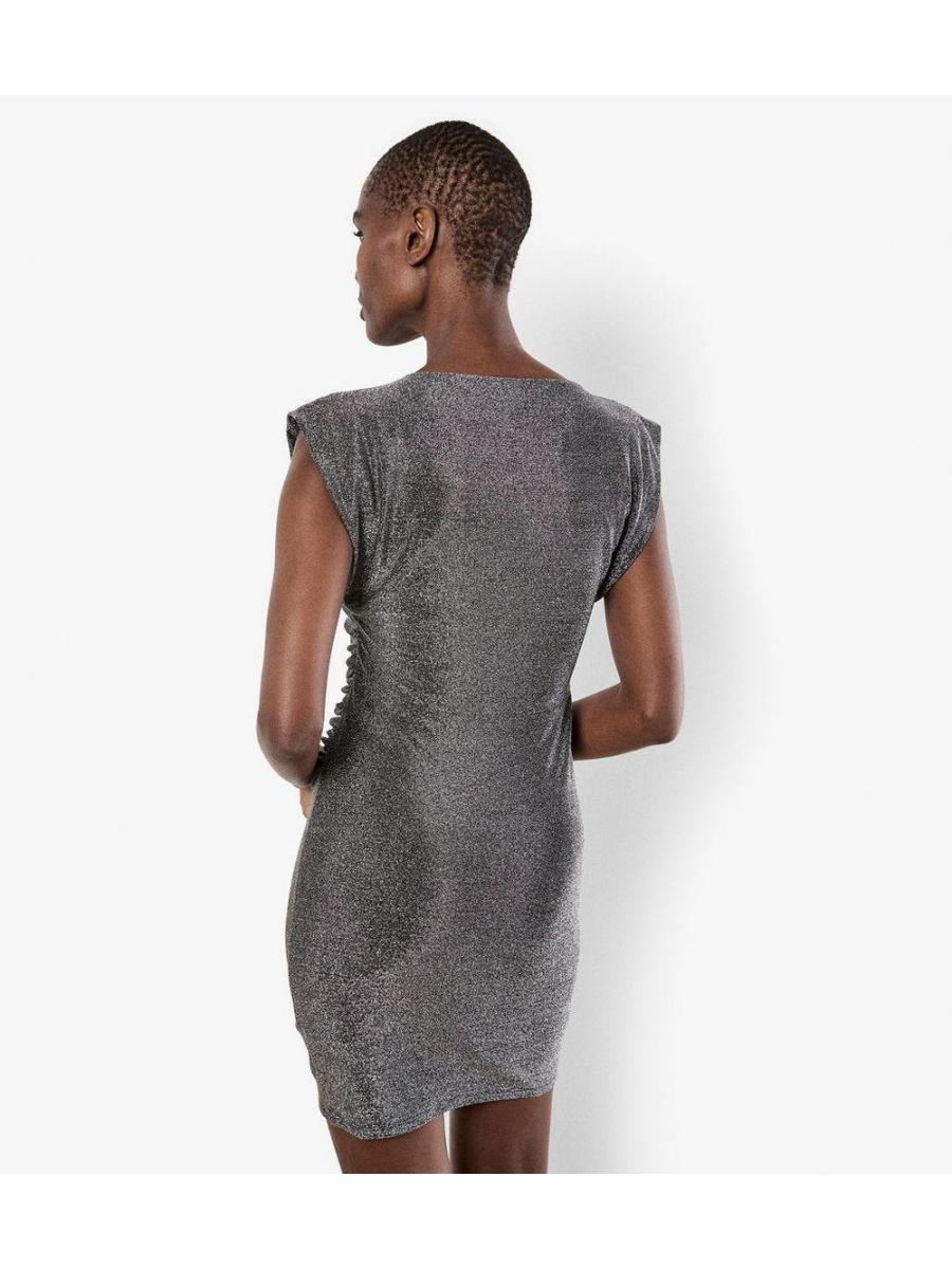 Apricot Silver Sparkle Ruched Dress