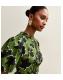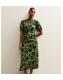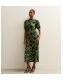 Green Crepe Floral Print Keyhole Midi Dress