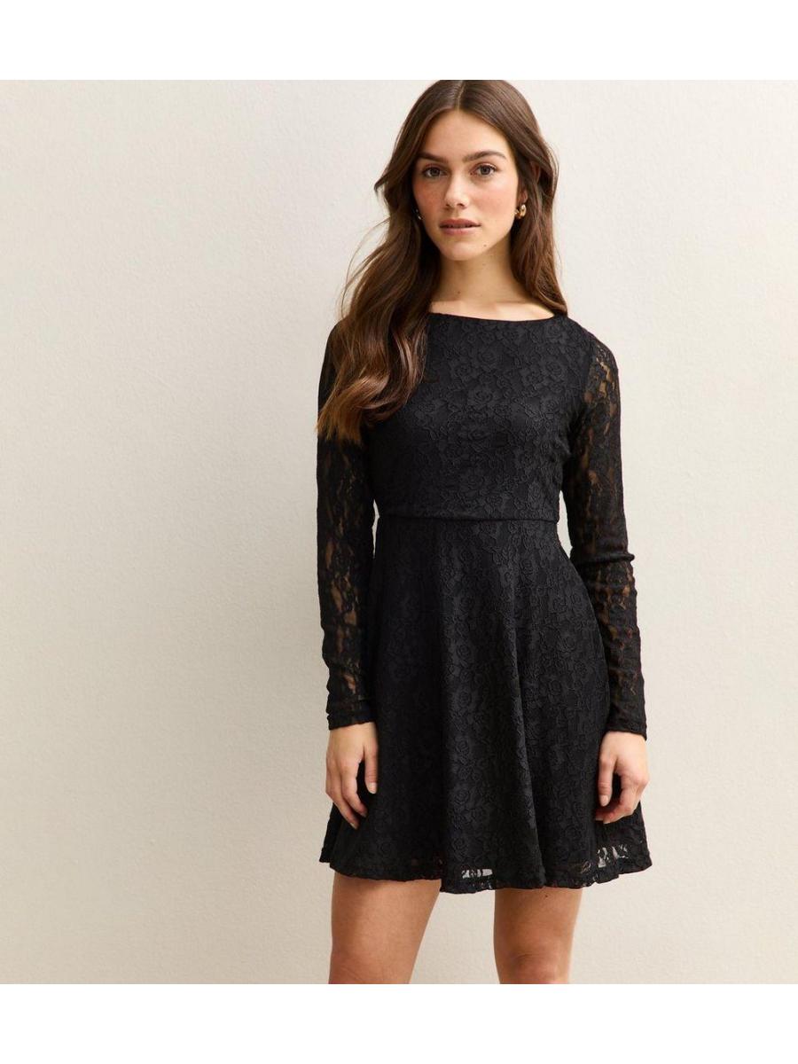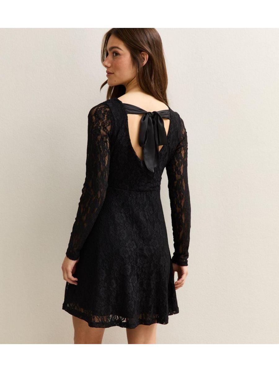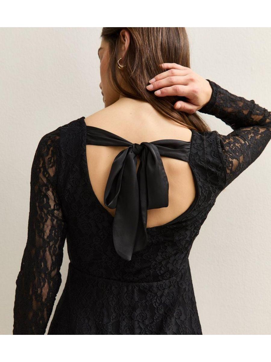 Petite Black Lace Bow Back Mini Dress