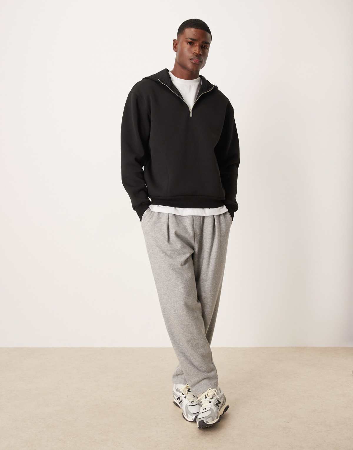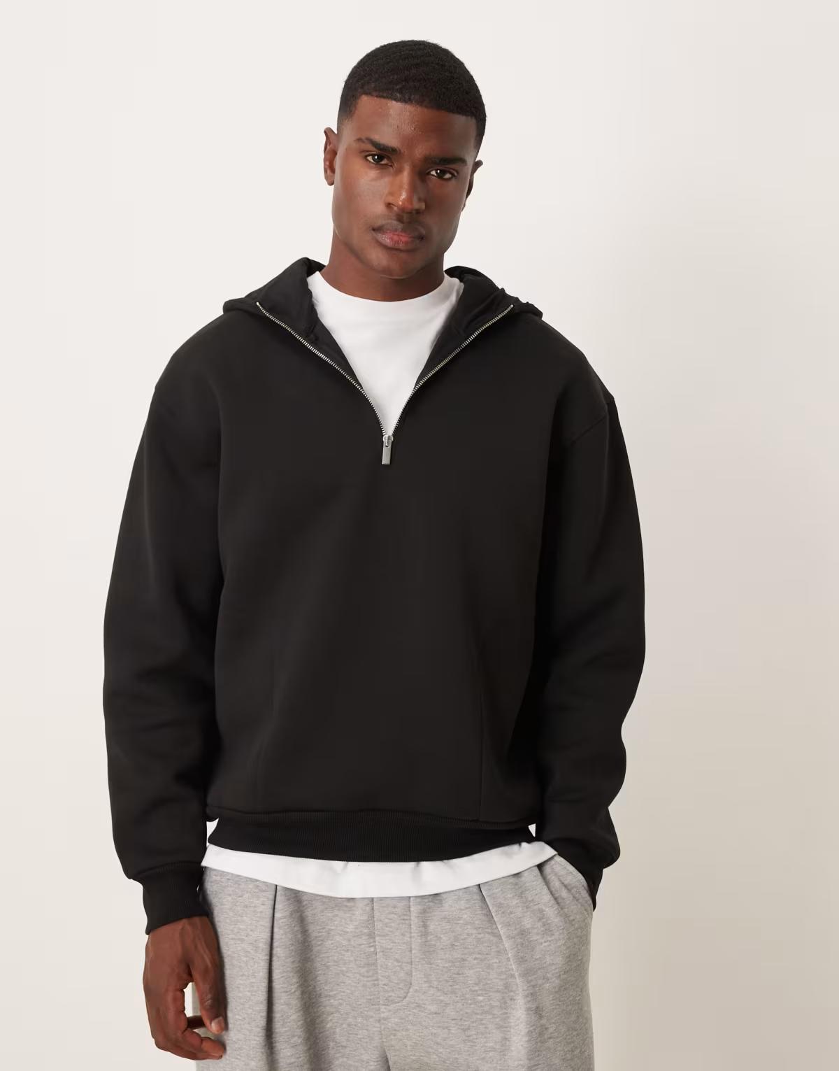 ASOS DESIGN heavyweight oversized half zip hoodie with funnel neck in scuba-style fabric in black