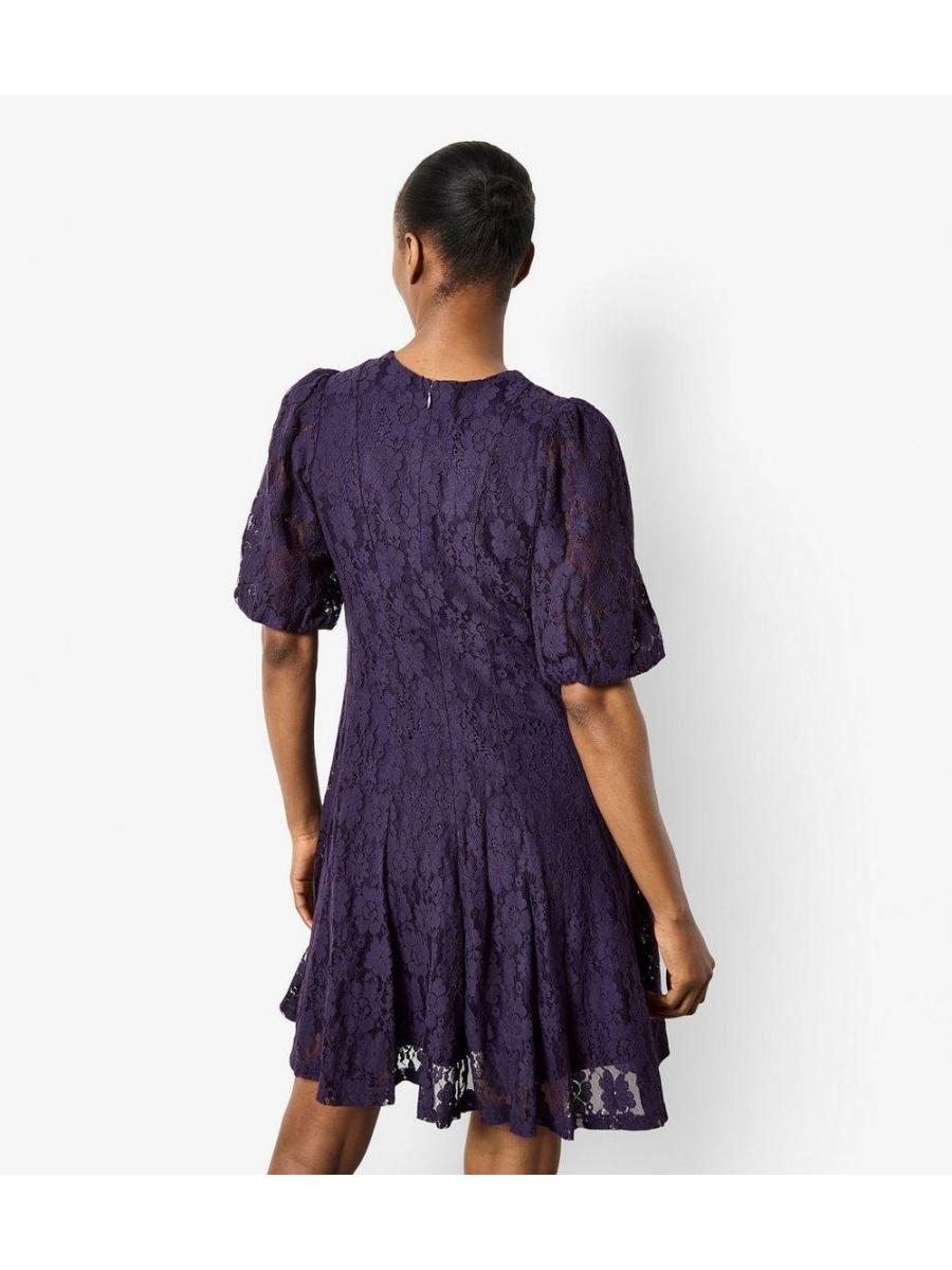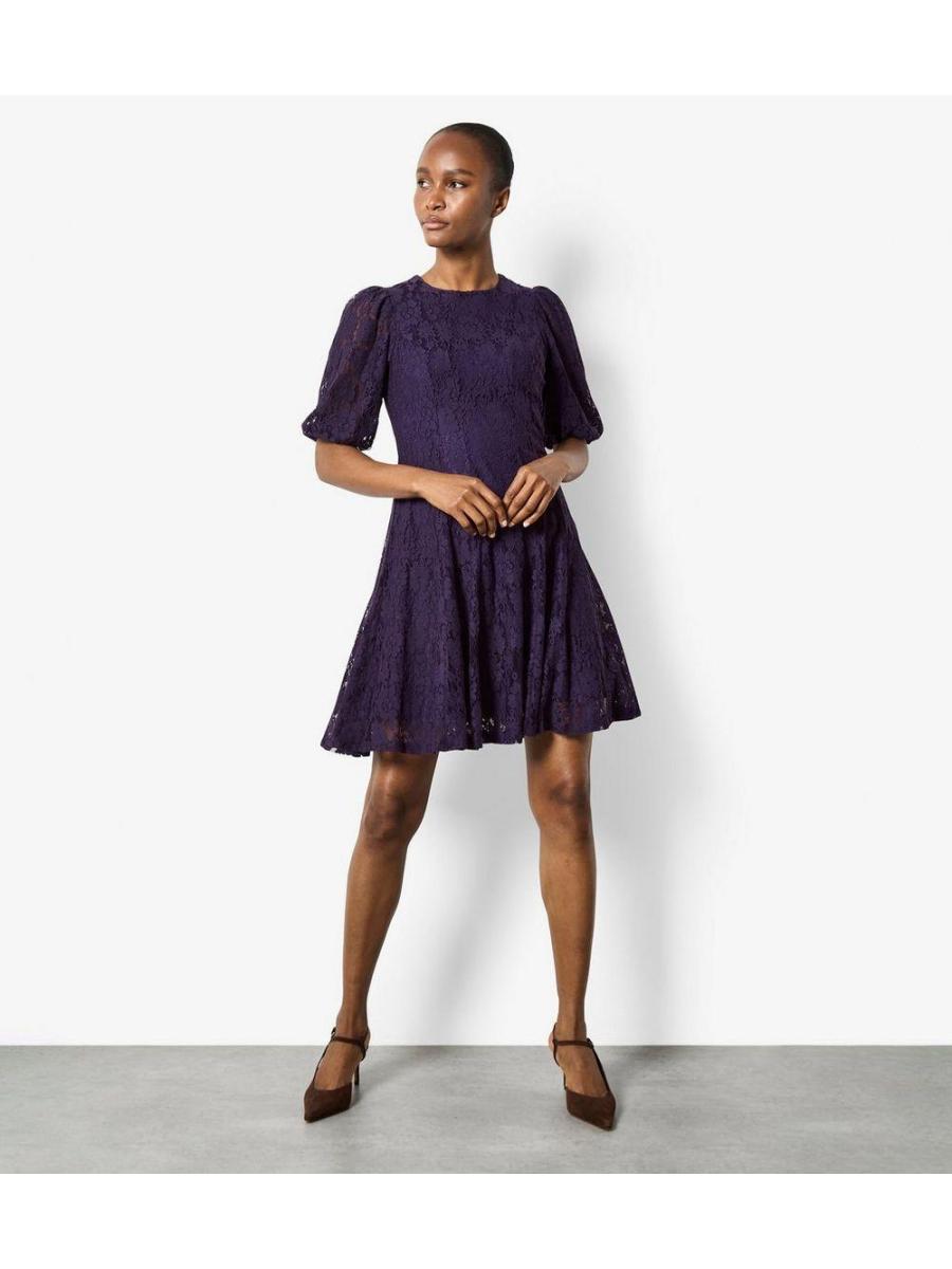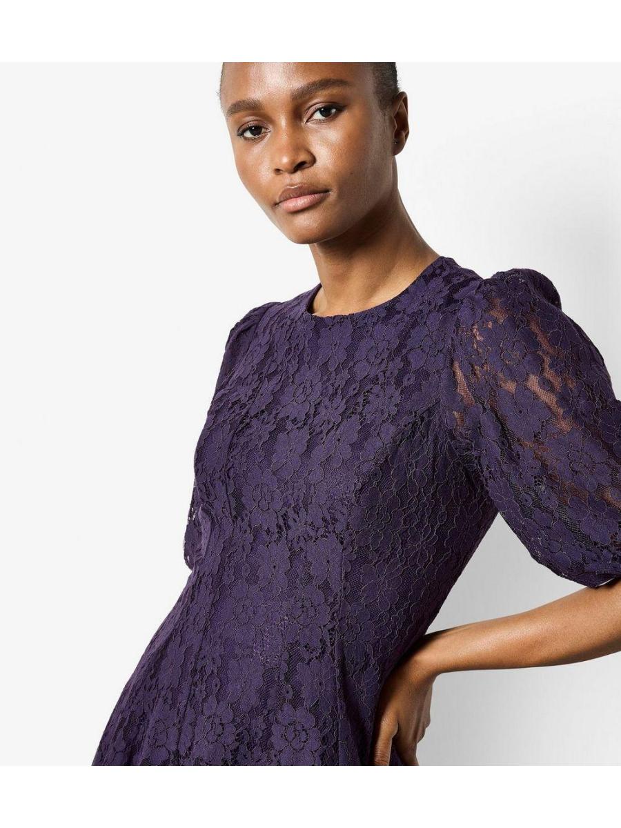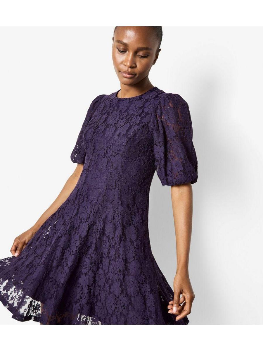 Apricot Dark Purple Floral Lace Puff Sleeve Dress