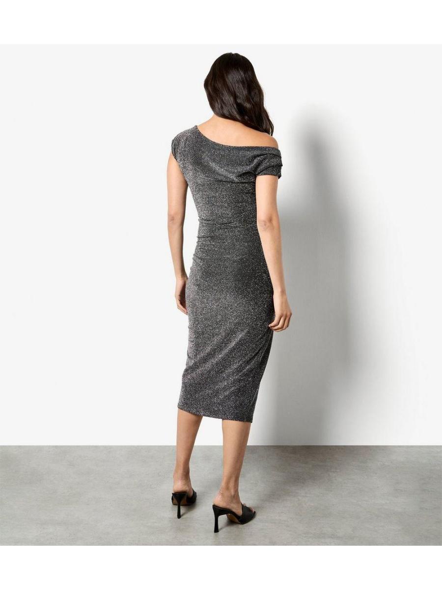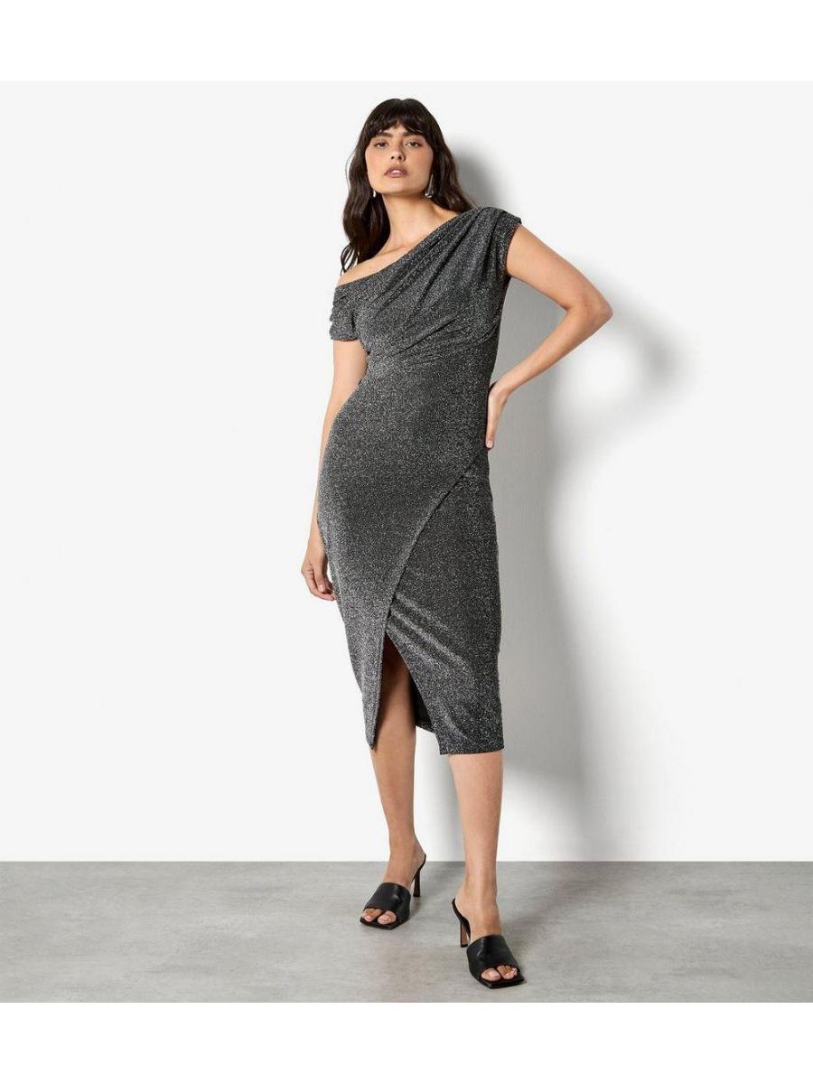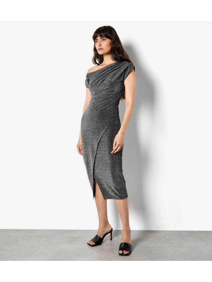 Apricot Silver Drape Shoulder Wrap Midi Dress