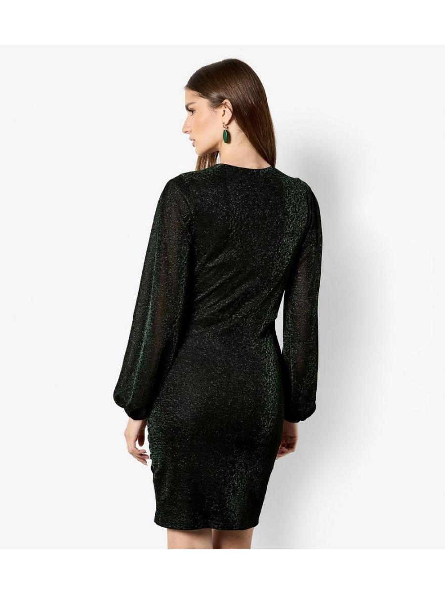 Apricot Dark Green Mottled Sparkle Wrap Dress
