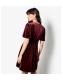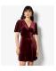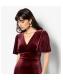 Apricot Burgundy Velvet V Neck Empire Mini Dress