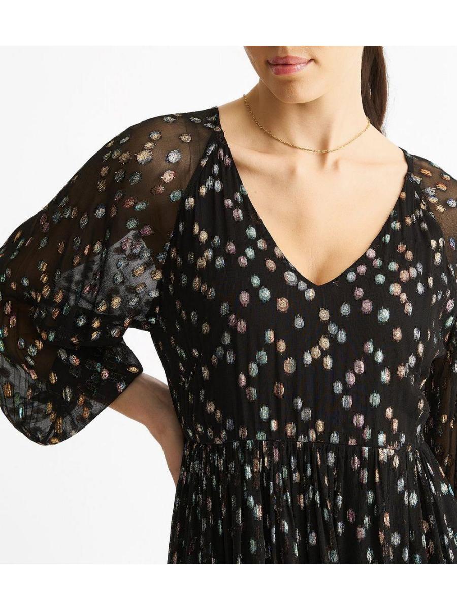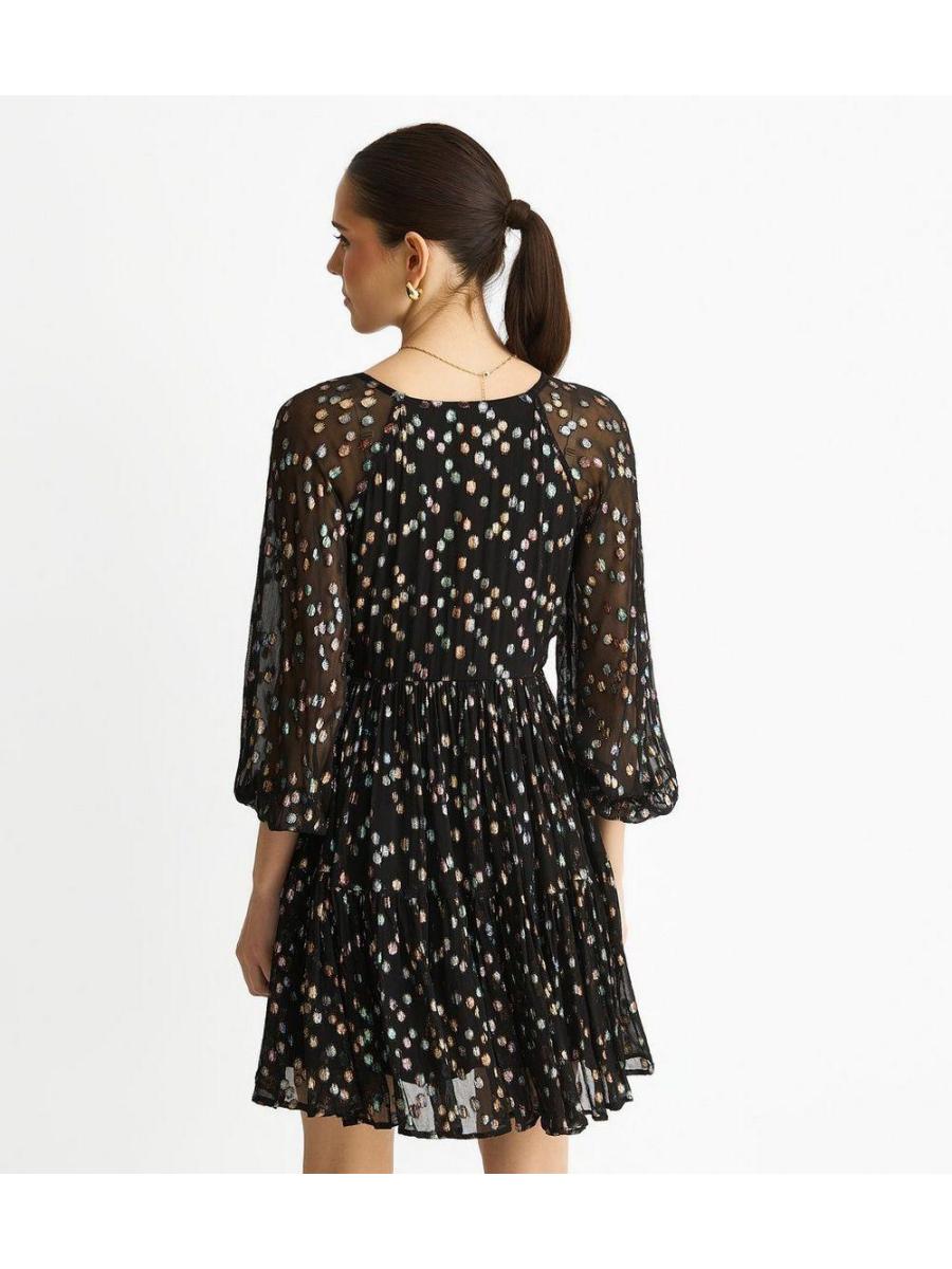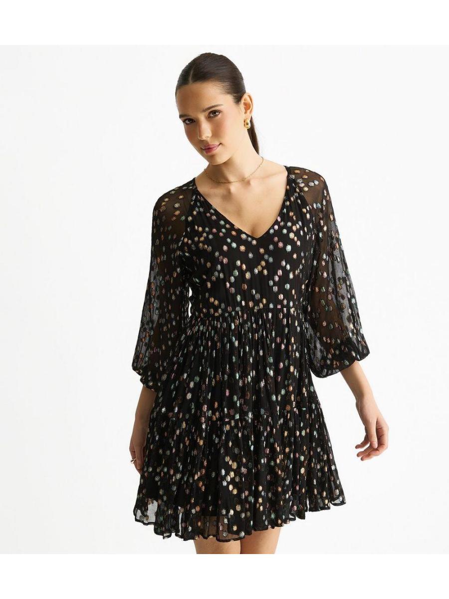 Gini London Black Chiffon Metallic Spot Mini Dress