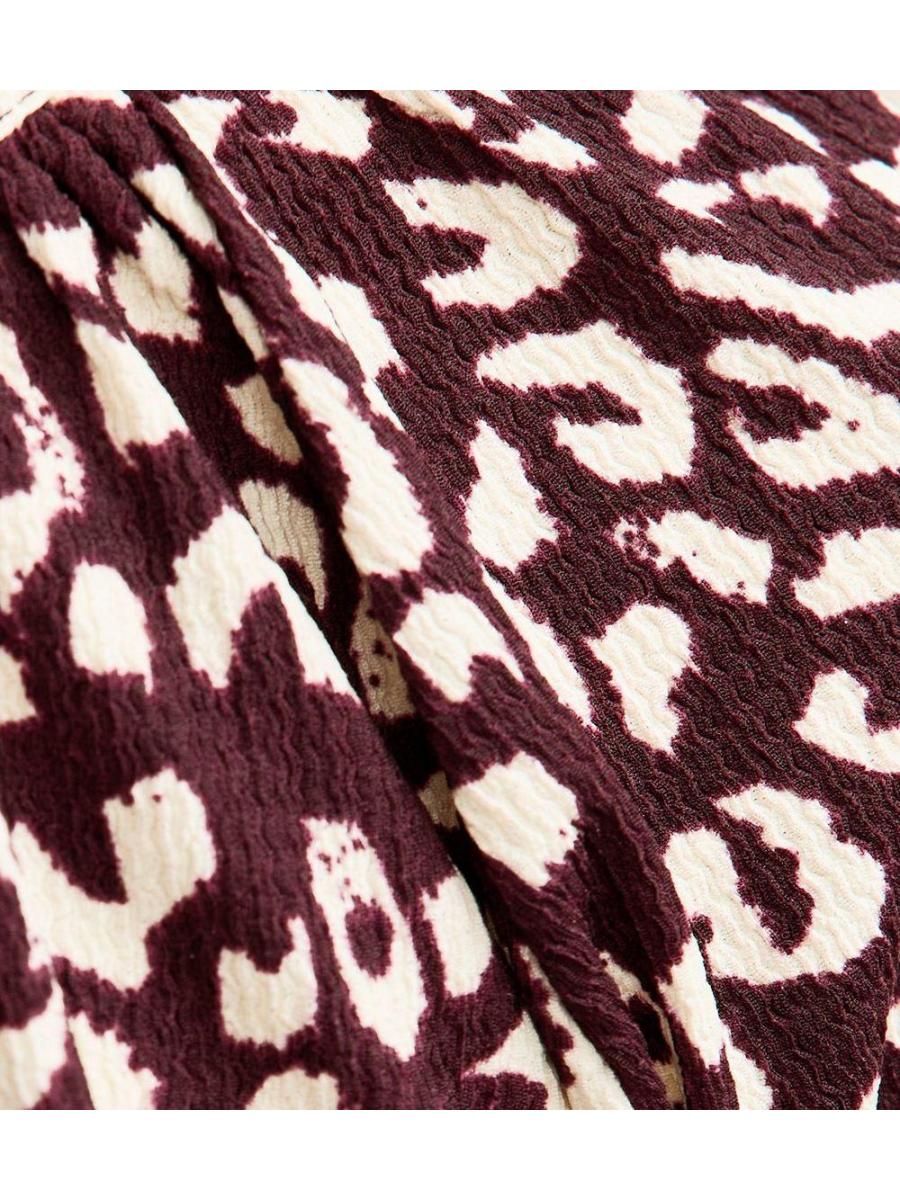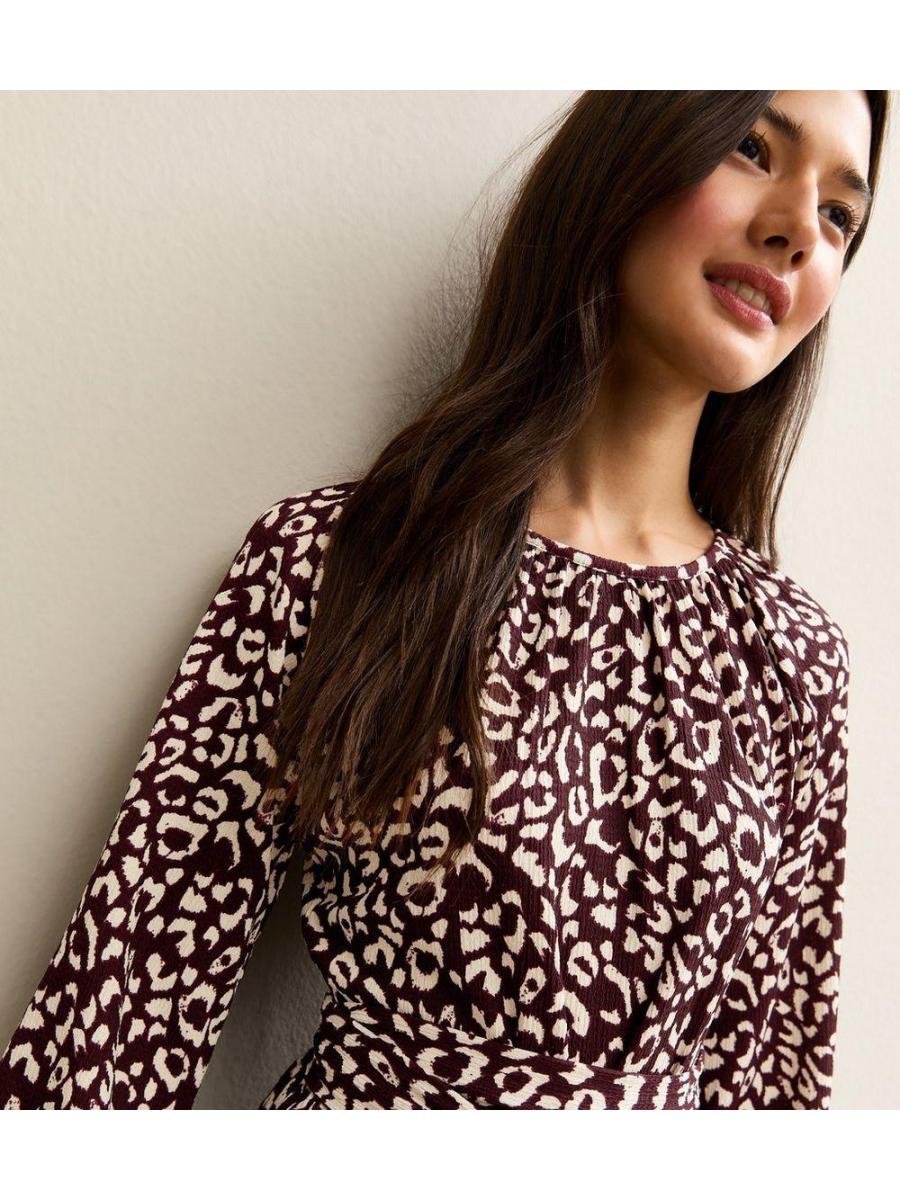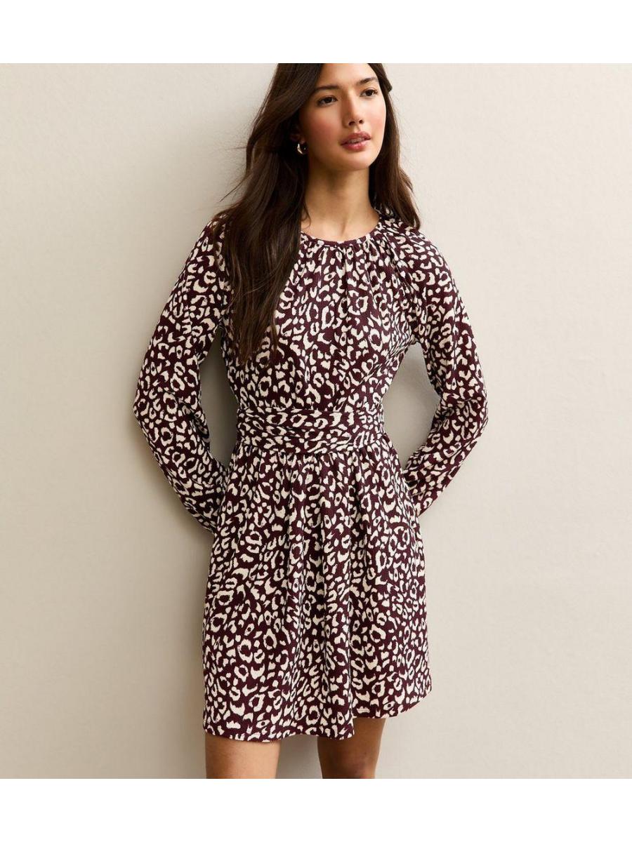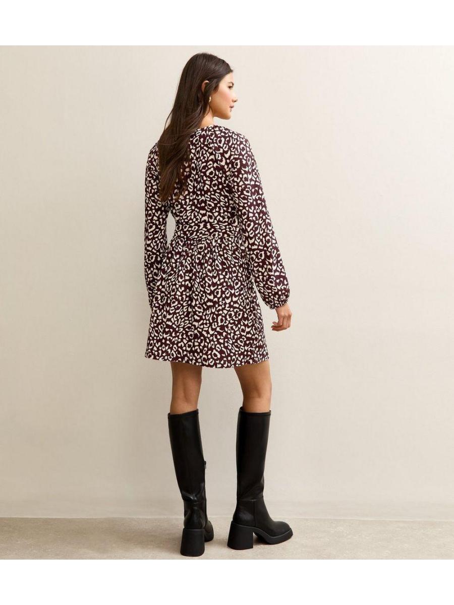 Dark Burgundy Animal Print Long Sleeve Mini Dress