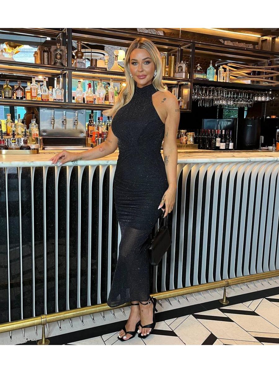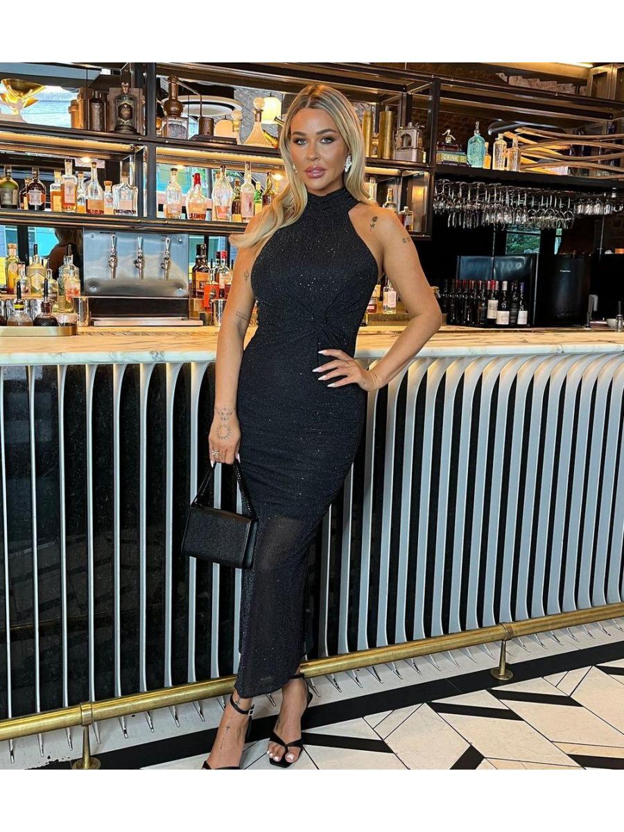 AX Paris Black Diamante Halter Neck Knot Detail Midi Dress