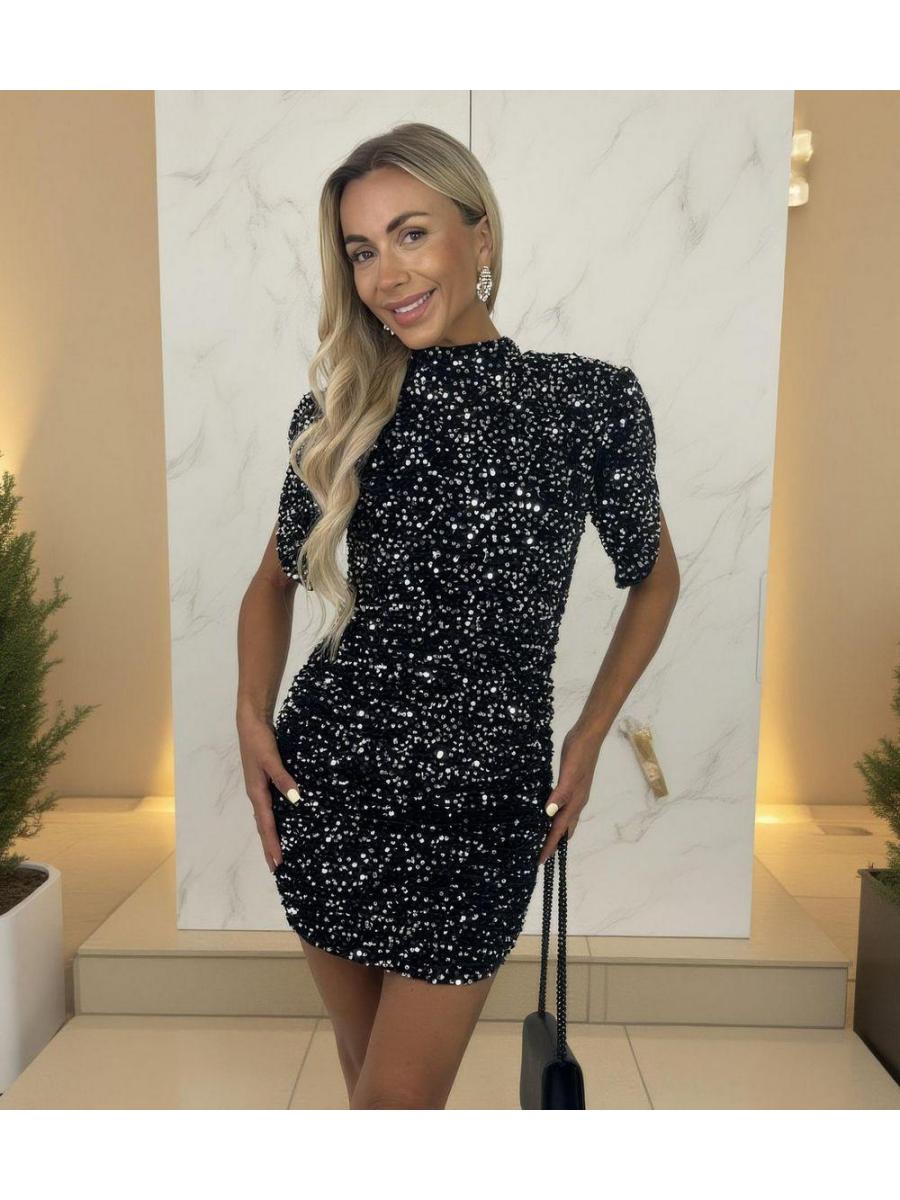 AX Paris Silver Sequin Split Sleeve Mini Dress