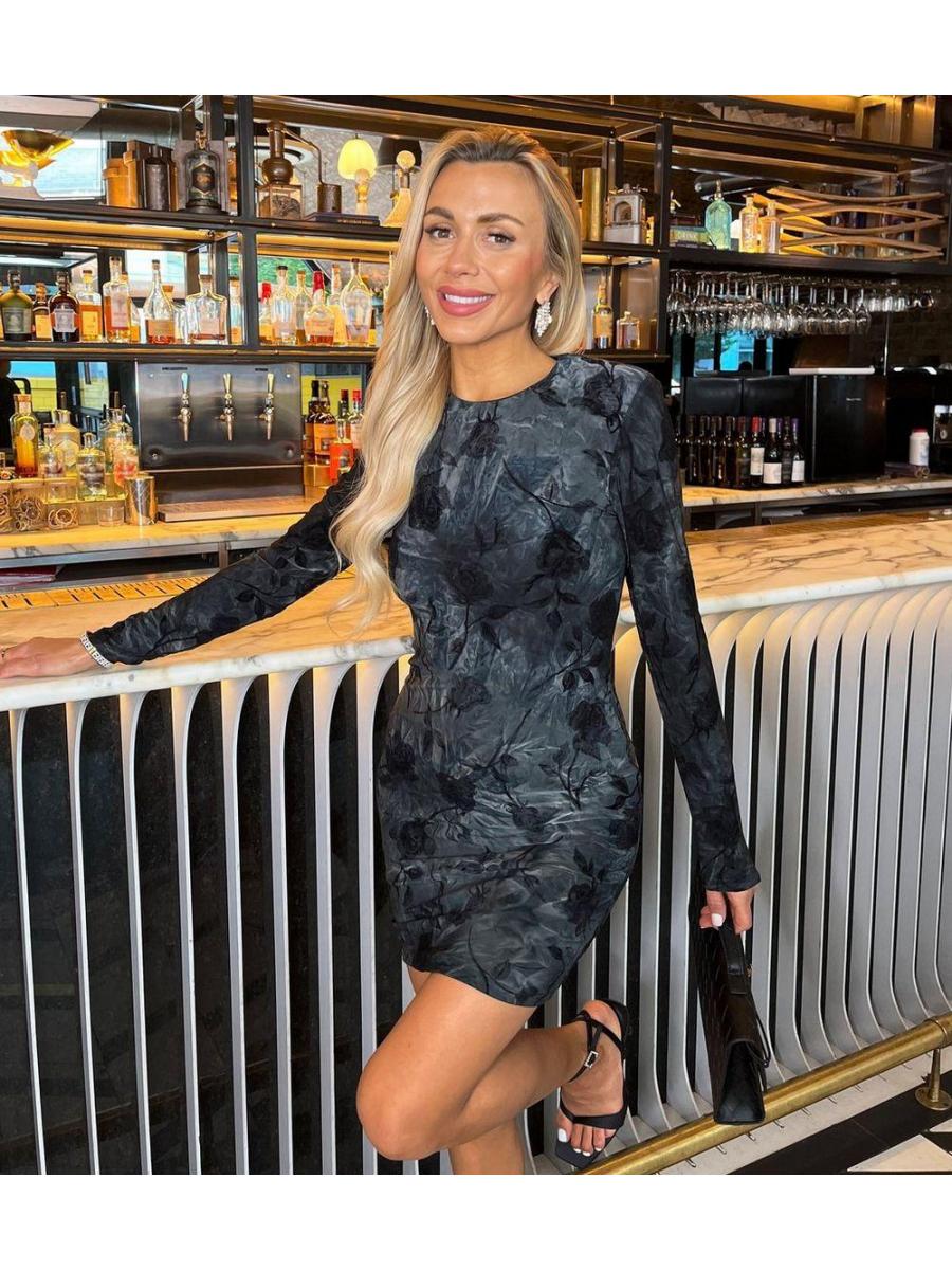 AX Paris Black Rose Velour Long Sleeve Mini Dress