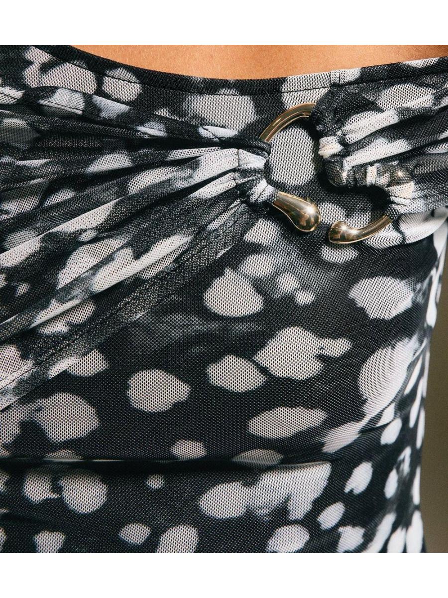 Black Spotty Print Off The Shoulder Midi Dress