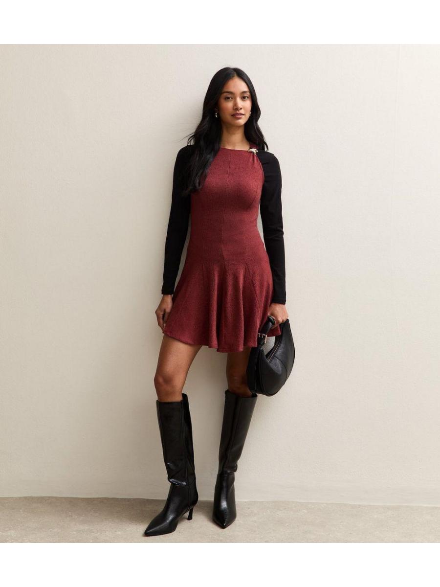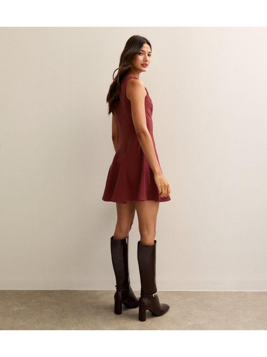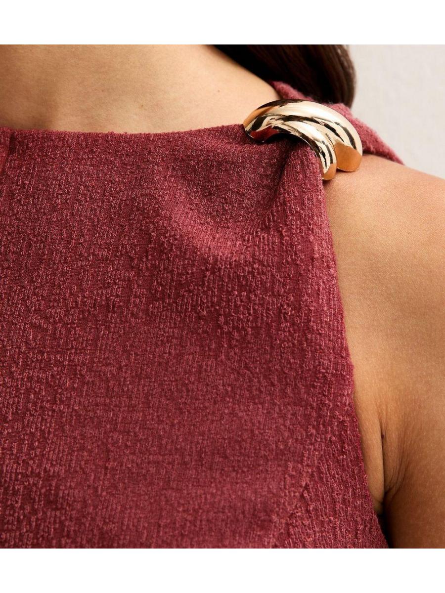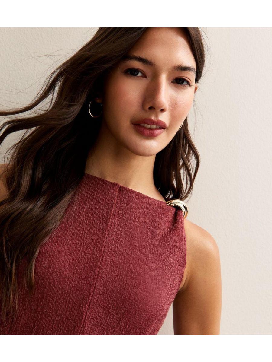 Dark Burgundy Shoulder Ring Mini Dress