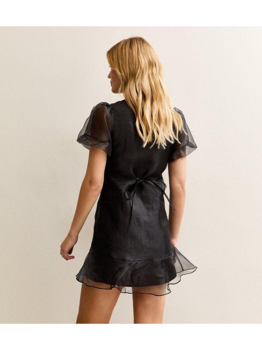 Black Organza Frill Hem Mini Dress