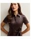 Dark Brown Faux Leather Shirt Midi Dress