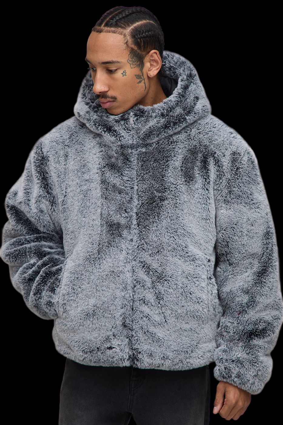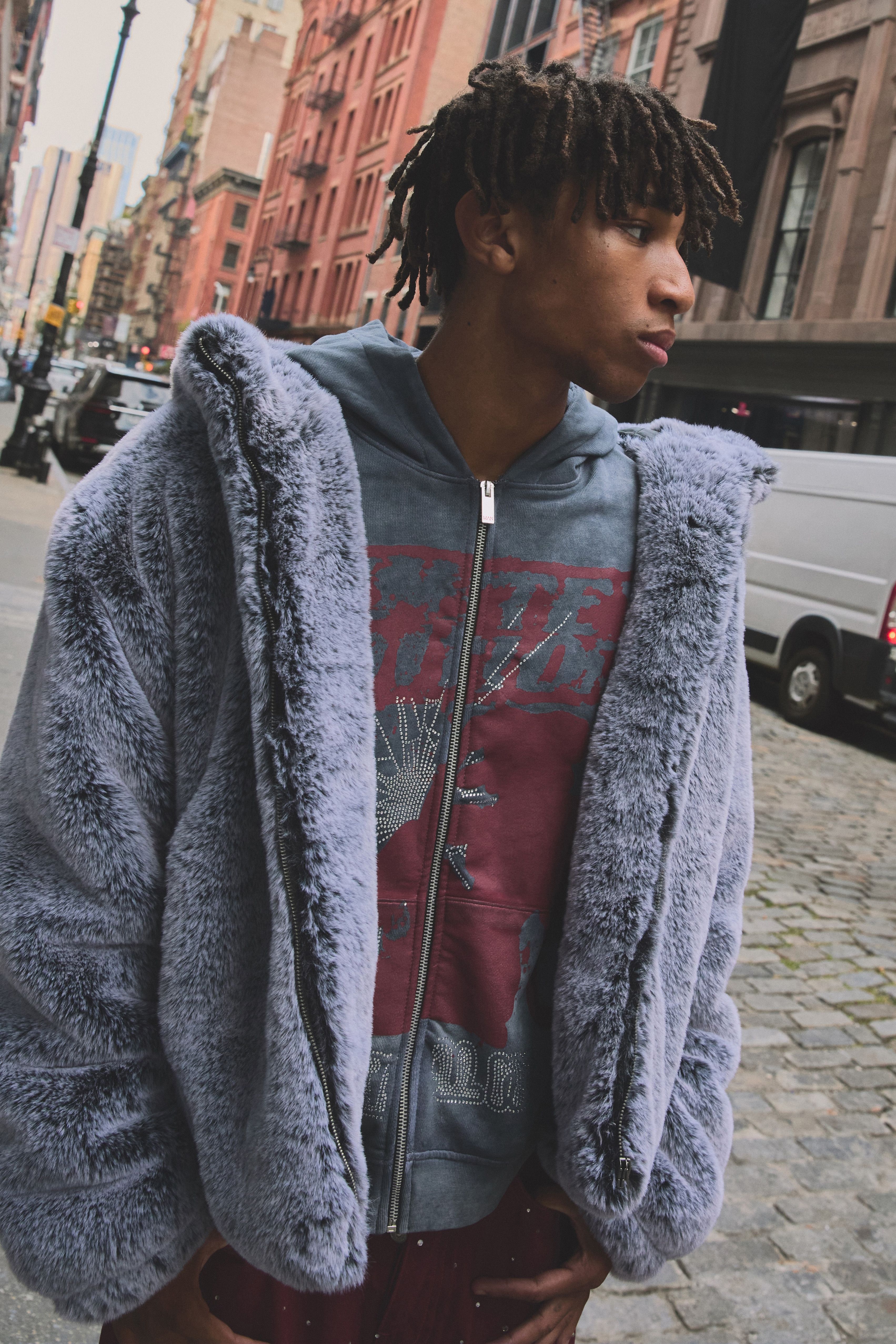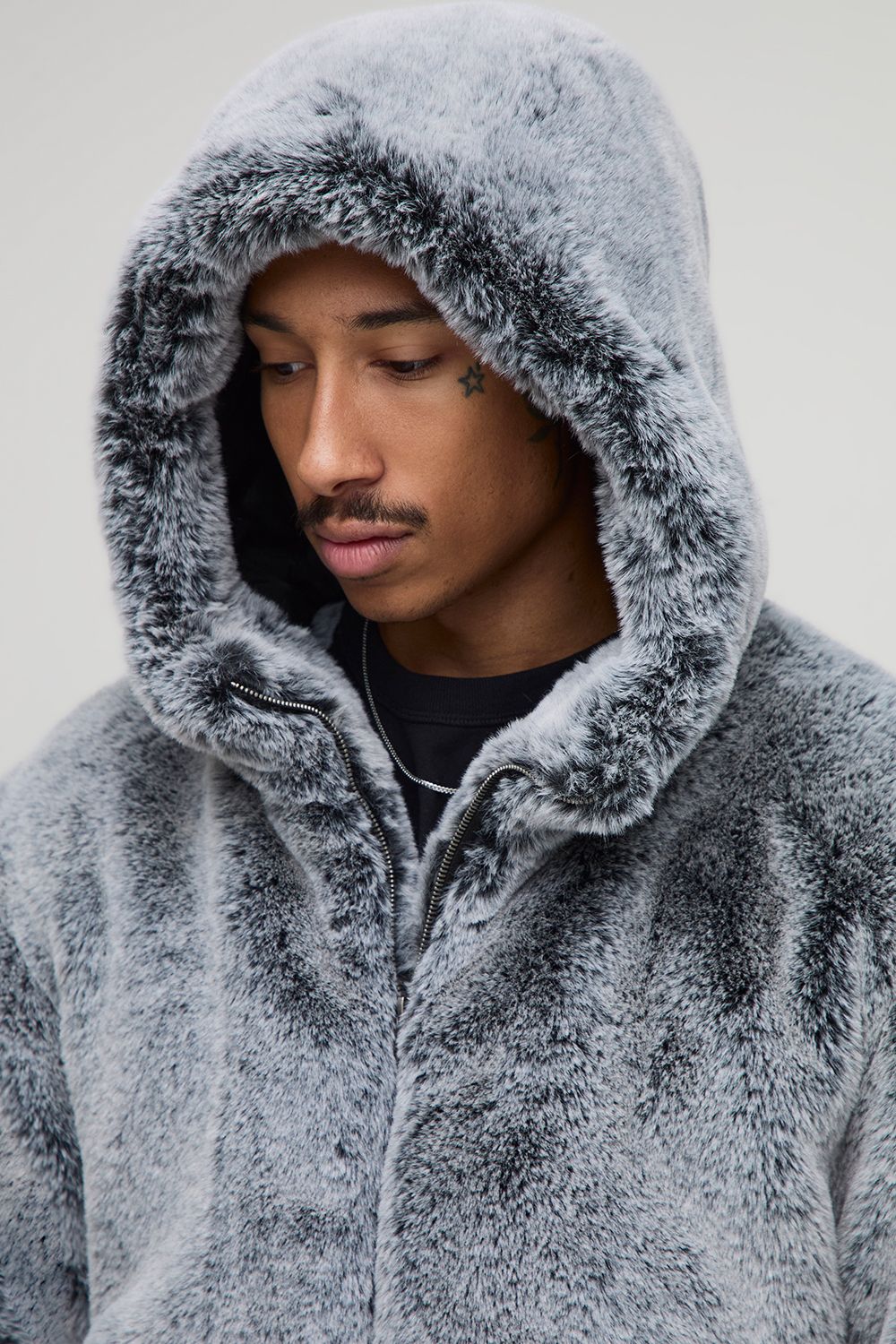 Regular Fit Thick Faux Fur Hooded Funnel Jacket