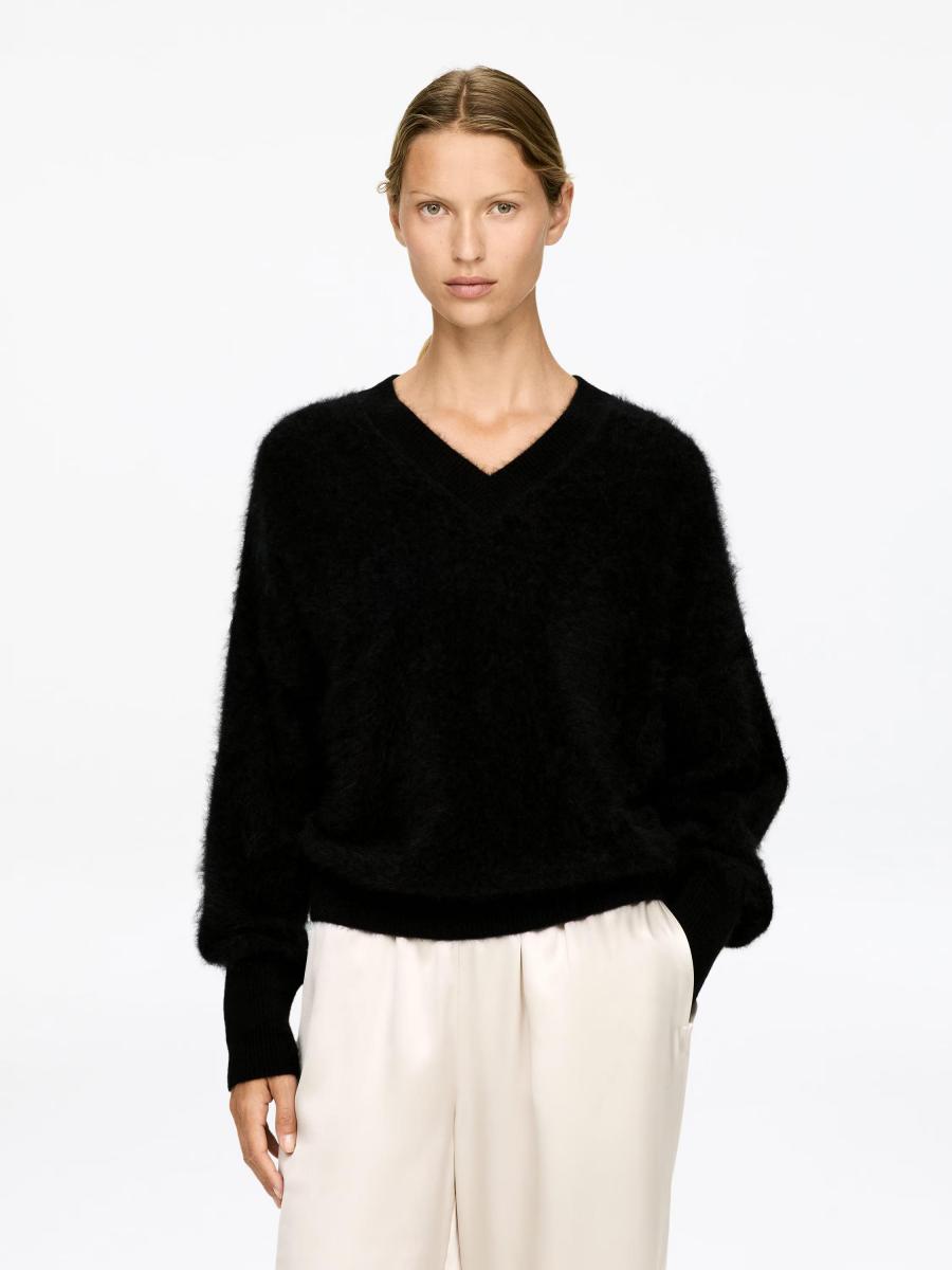Plush jumper crafted from pure cashmere with a brushed finish. Features a V-neck at both the front and back and finished with ribbed trims. This style contains 100% GCS cashmere. The Good Cashmere Standard (GCS) is owned by the Aid by Trade Foundation (AbTF) and sets out requirements on animal welfare, land management and herders' working conditions. The percentage refers to the main material, excluding threads.ARKET/Women's clothes/Women's knitwear/Women's cashmere clothes