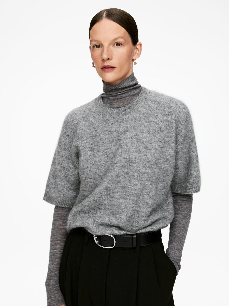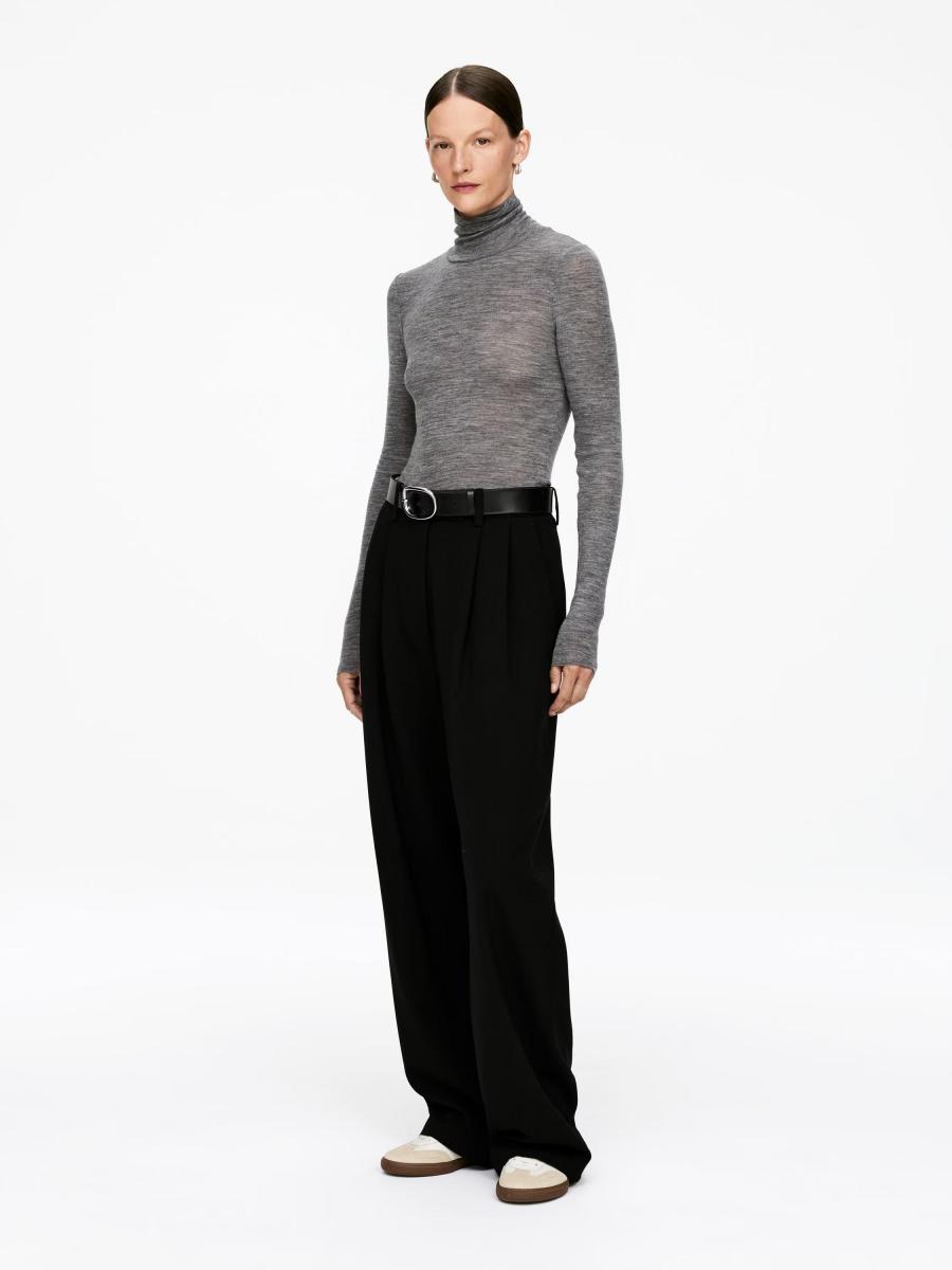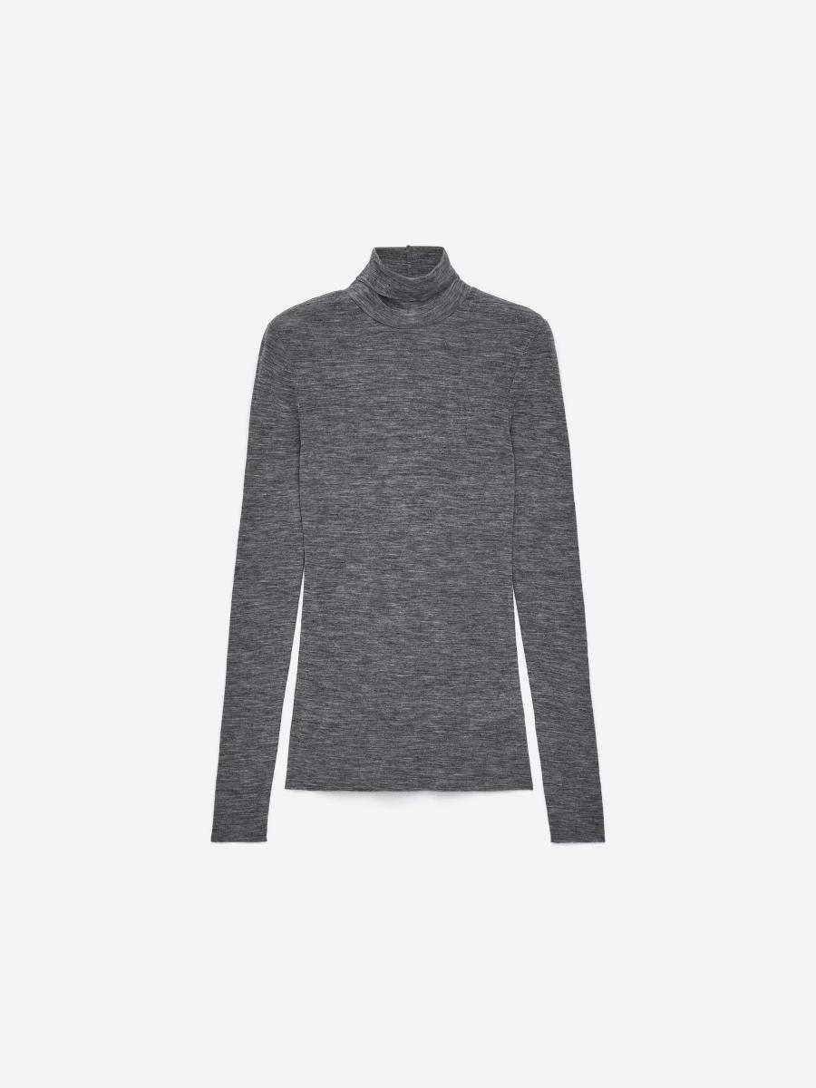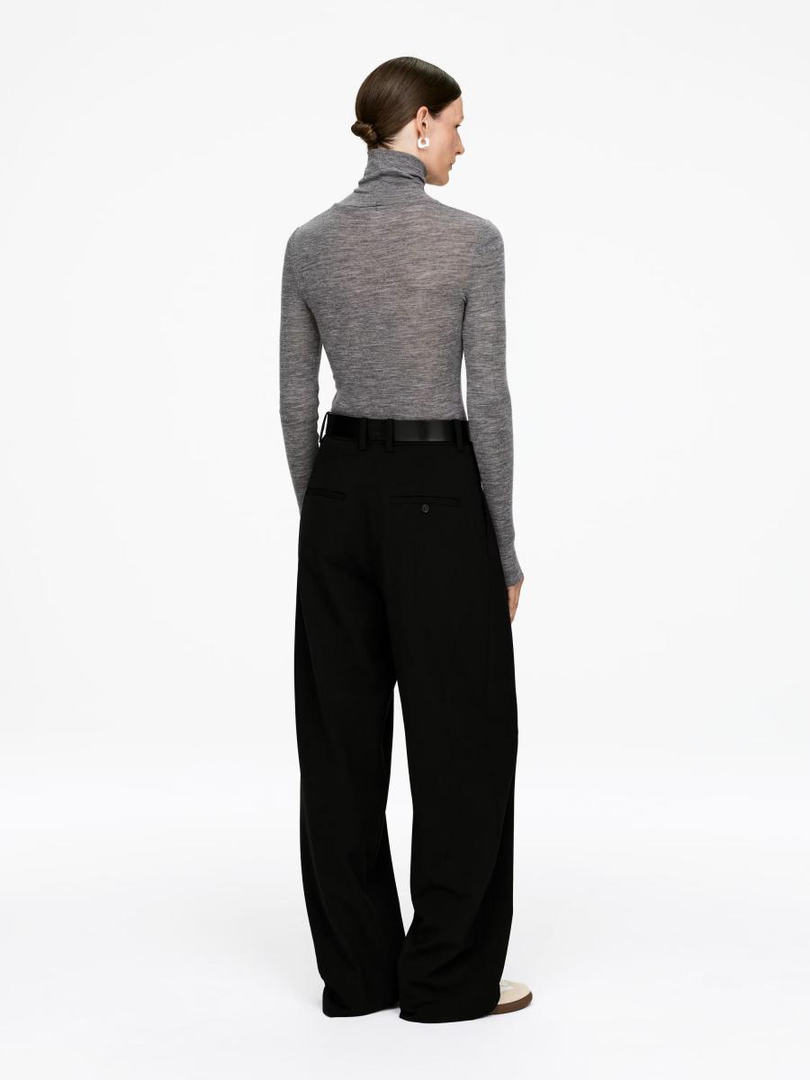 Sheer roll-neck jersey top knitted from pure merino wool. Styled with raw edges at cuffs, neck and bottom hem. This top contains 100% RWS wool, certified by control union 893290. Products certified to the Responsible Wool Standard (RWS) contain wool fiber from farms independently certified to animal welfare and land management requirements.ARKET/