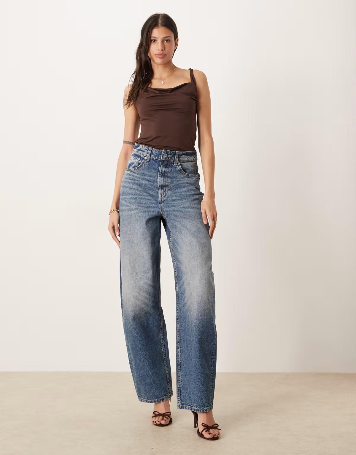 About MeCircular Design Information Only the ASOS DESIGN Tall high waisted barrel leg jeans in dark mid wash Circular Design Collection of the ASOS Circular Design Collection.