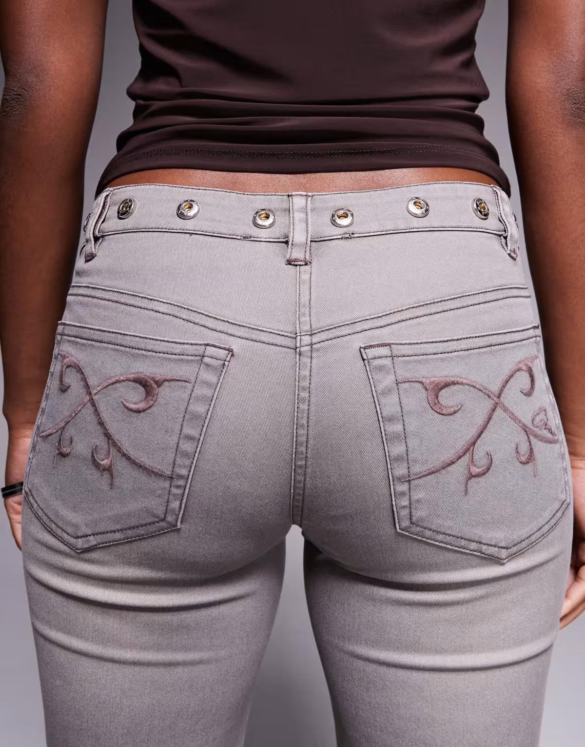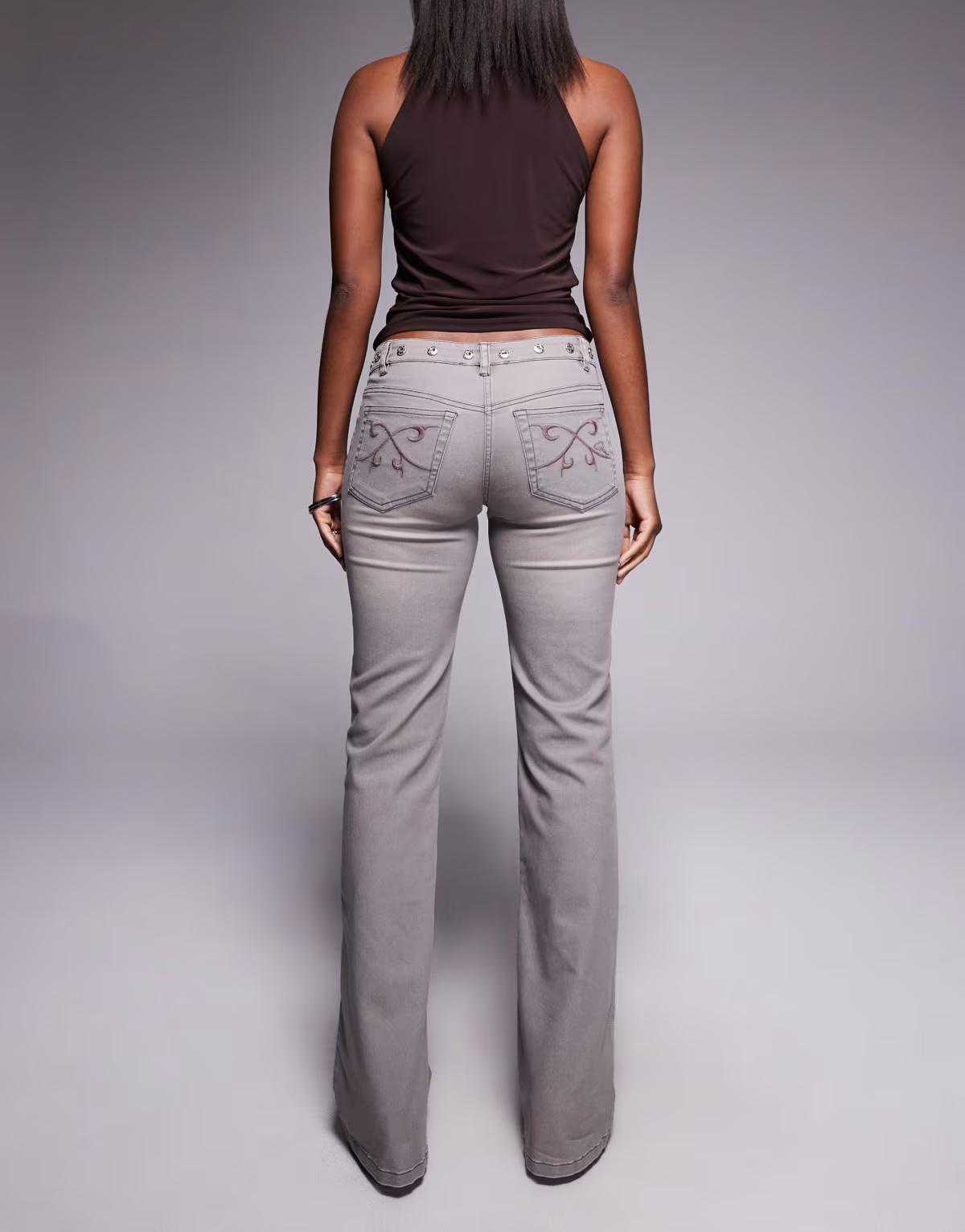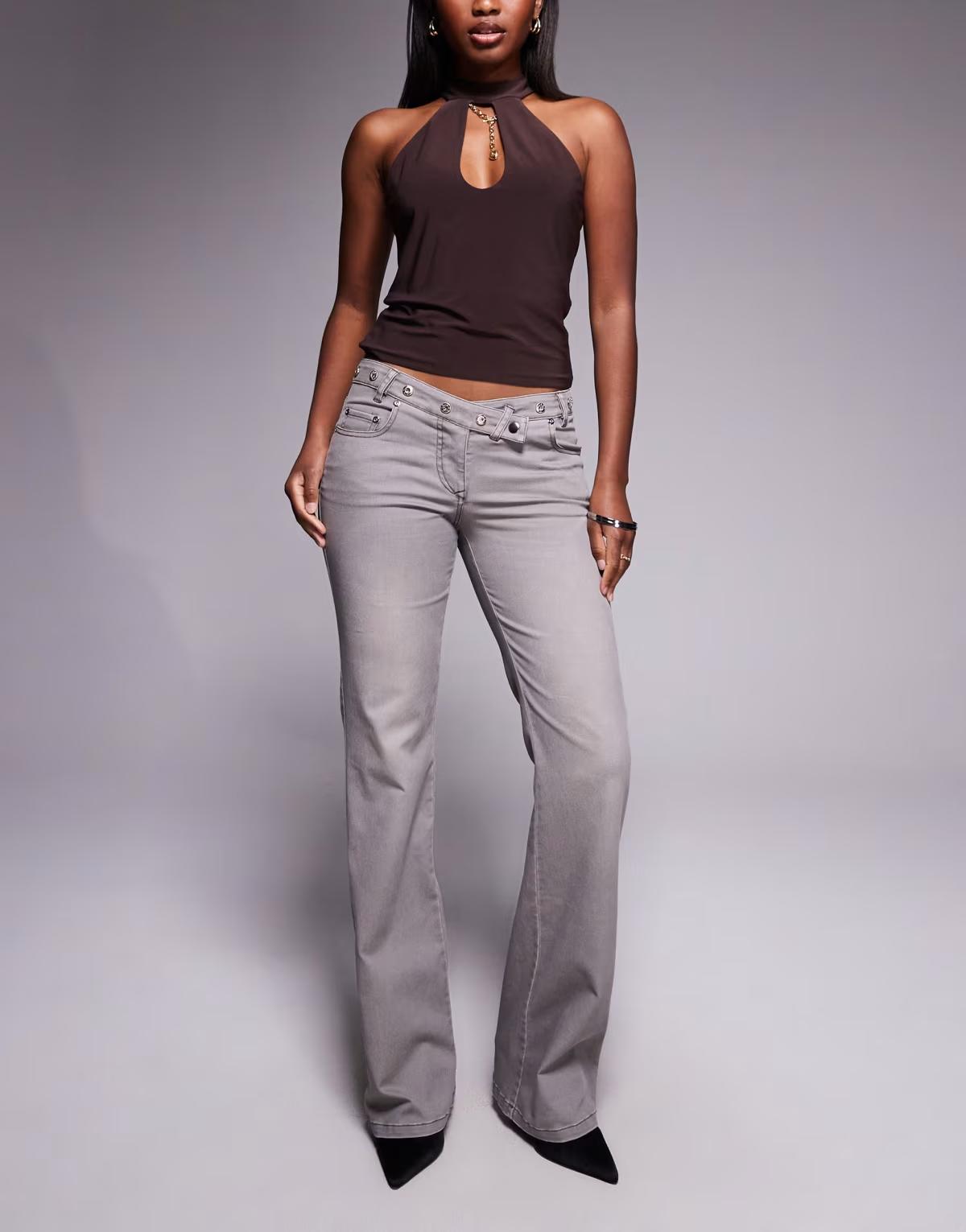 I.AM.GIA Greer low rise cross front stud detail waistband wide leg jeans in grey