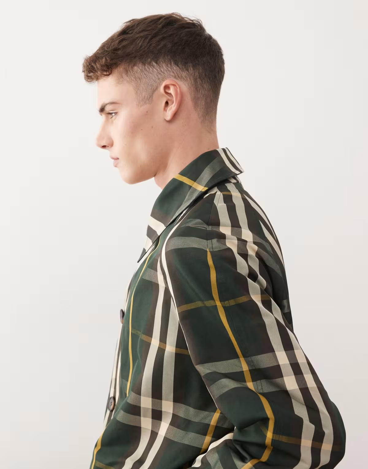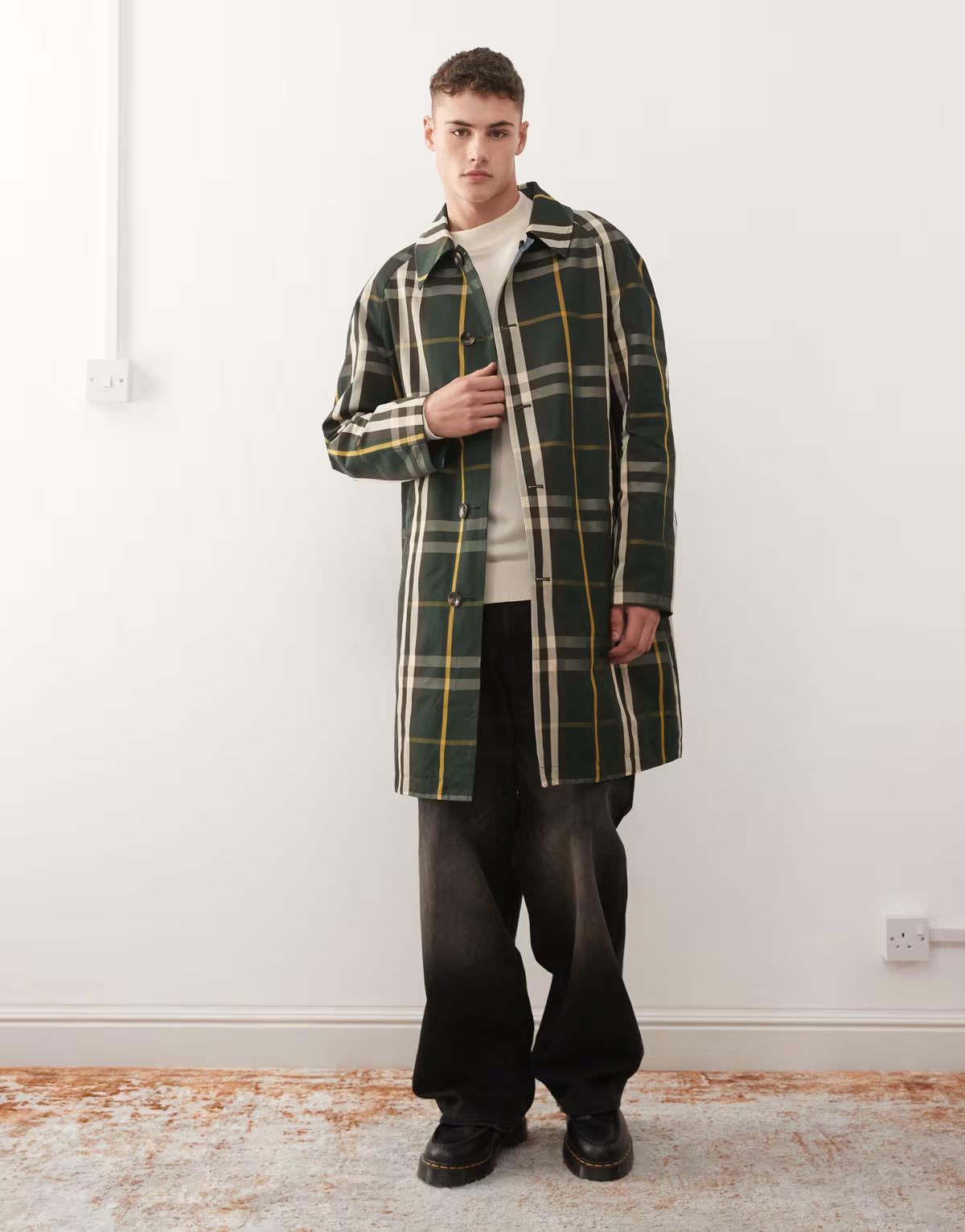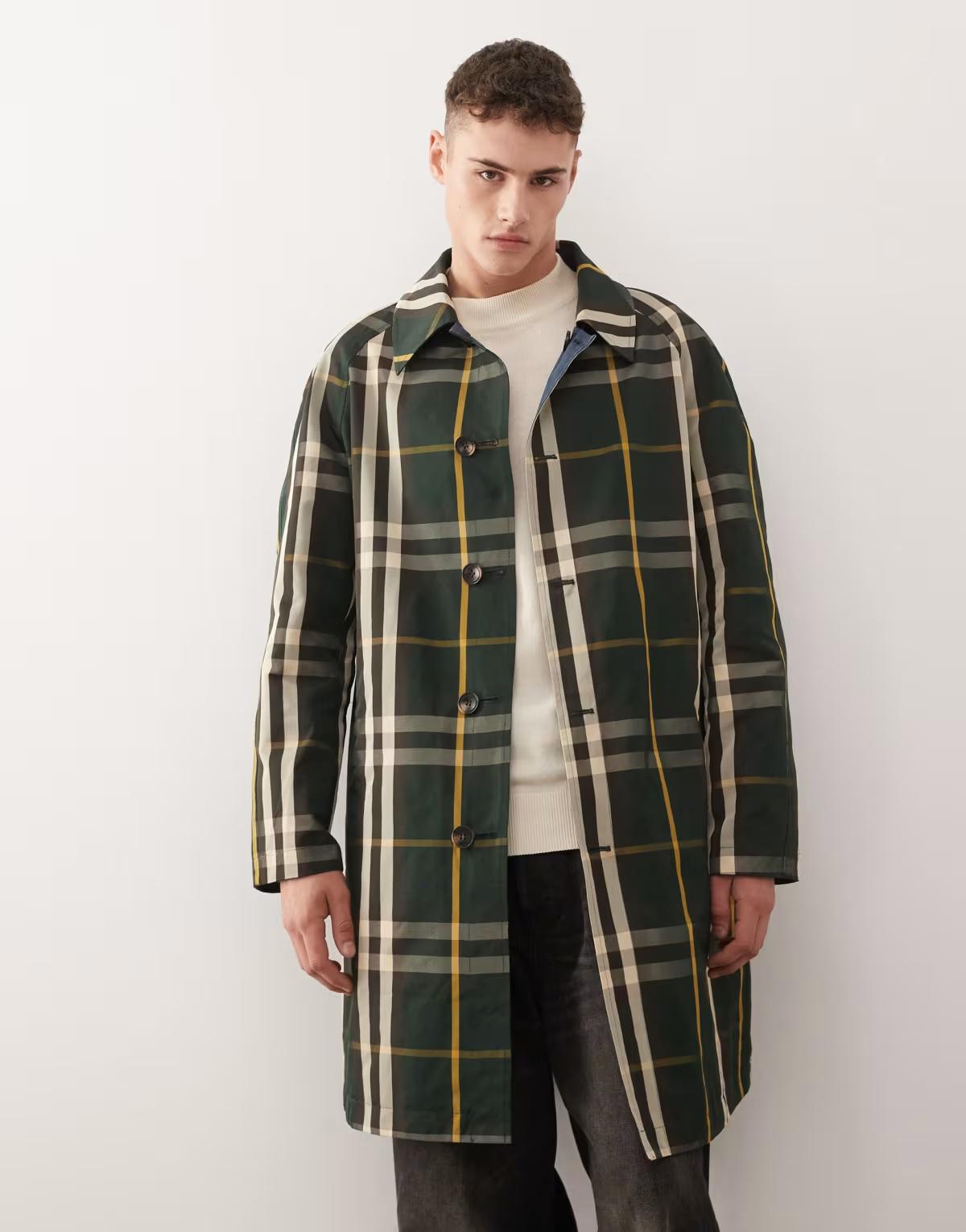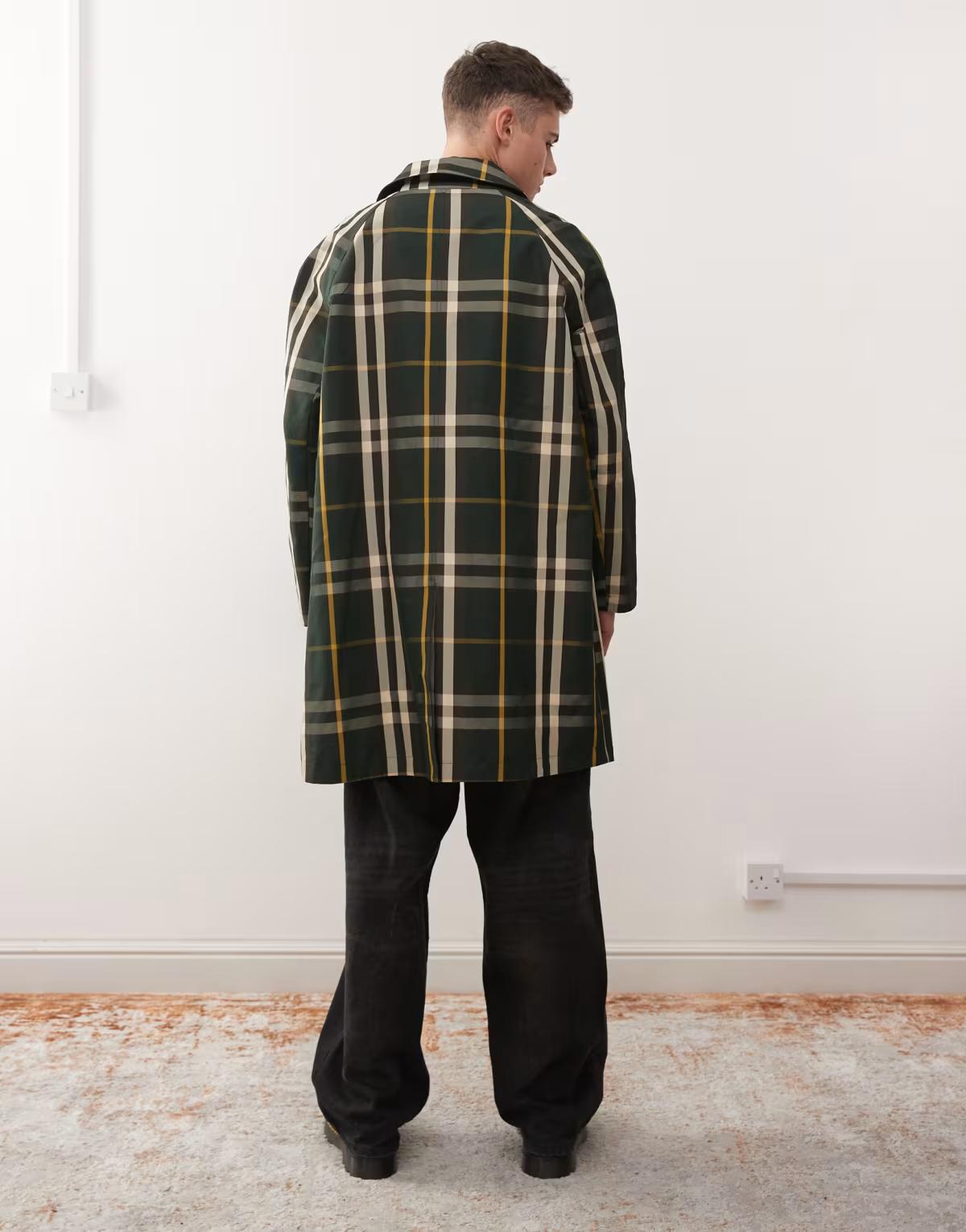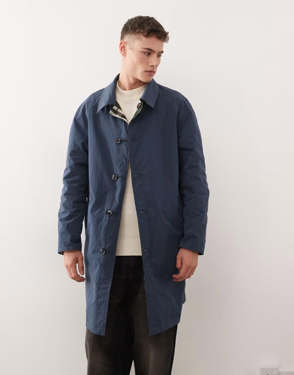Reclaimed Vintage reversible check printed longline mac in navy