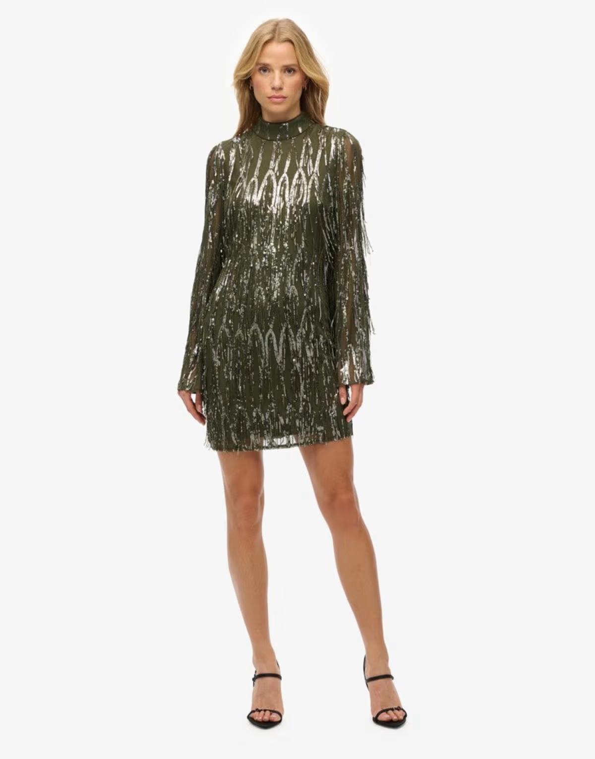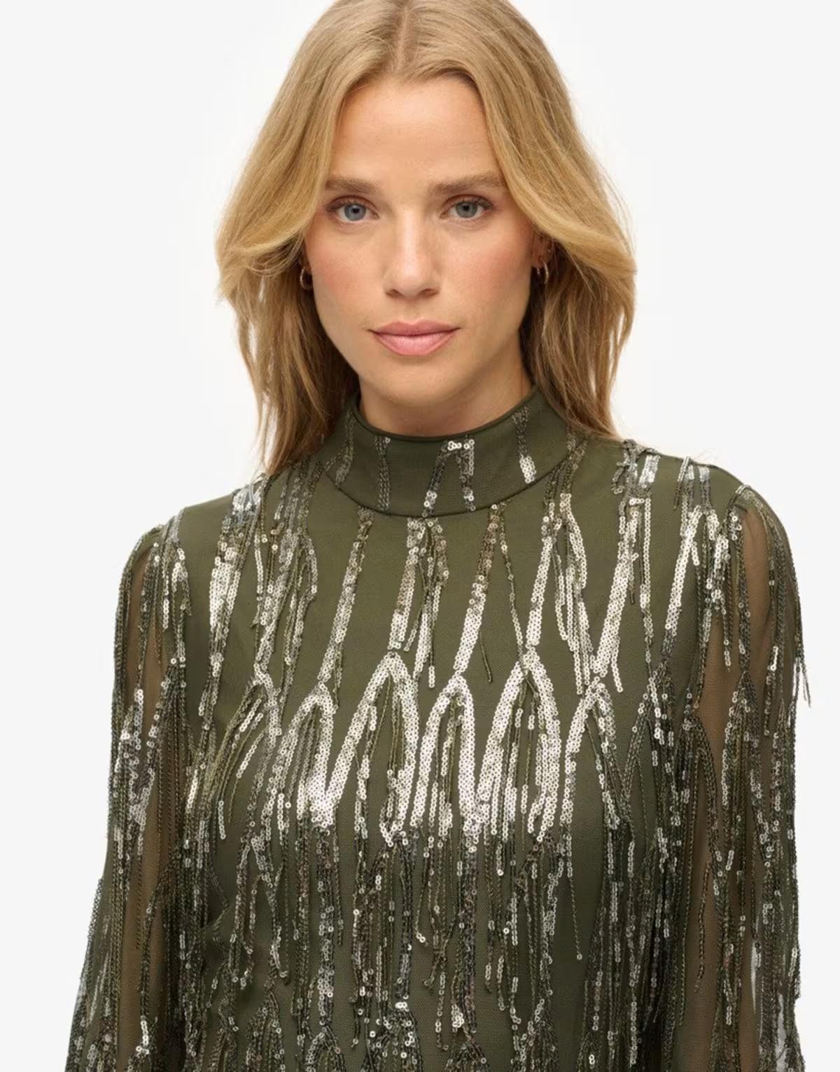 BrandSuperdry merges Japanese-inspired graphics with vintage Americana styling. The result? Expect quality fabrics, hand-drawn prints and tailored fits to slot into your everyday line-up. Take a look at our edit, which features everything from footwear to swimwear, as well as casual T-shirts, dresses and knitwear for nailing that off-duty aesthetic.About MeSequin embellished