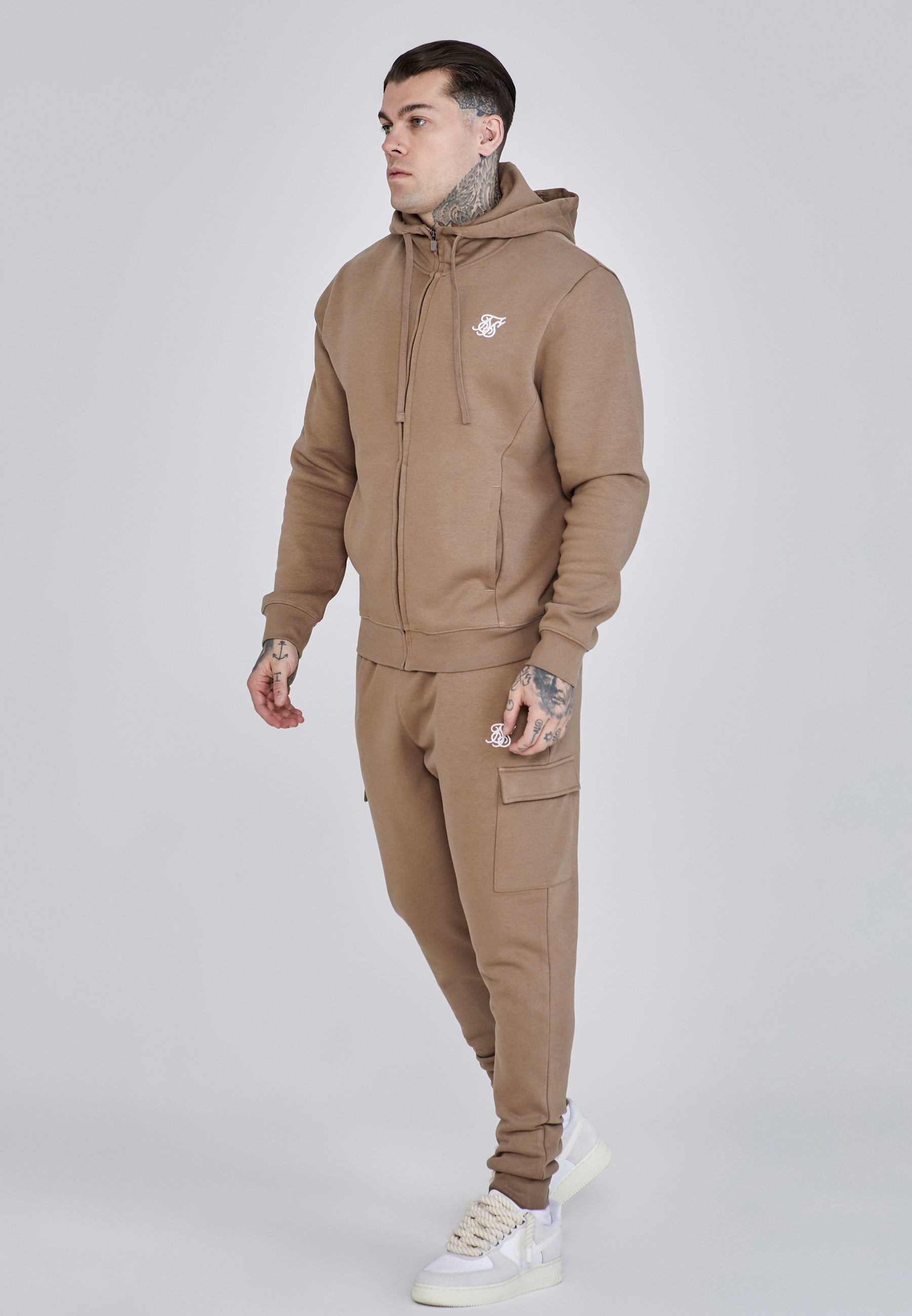 Brown Essentials Full Zip Hoodie