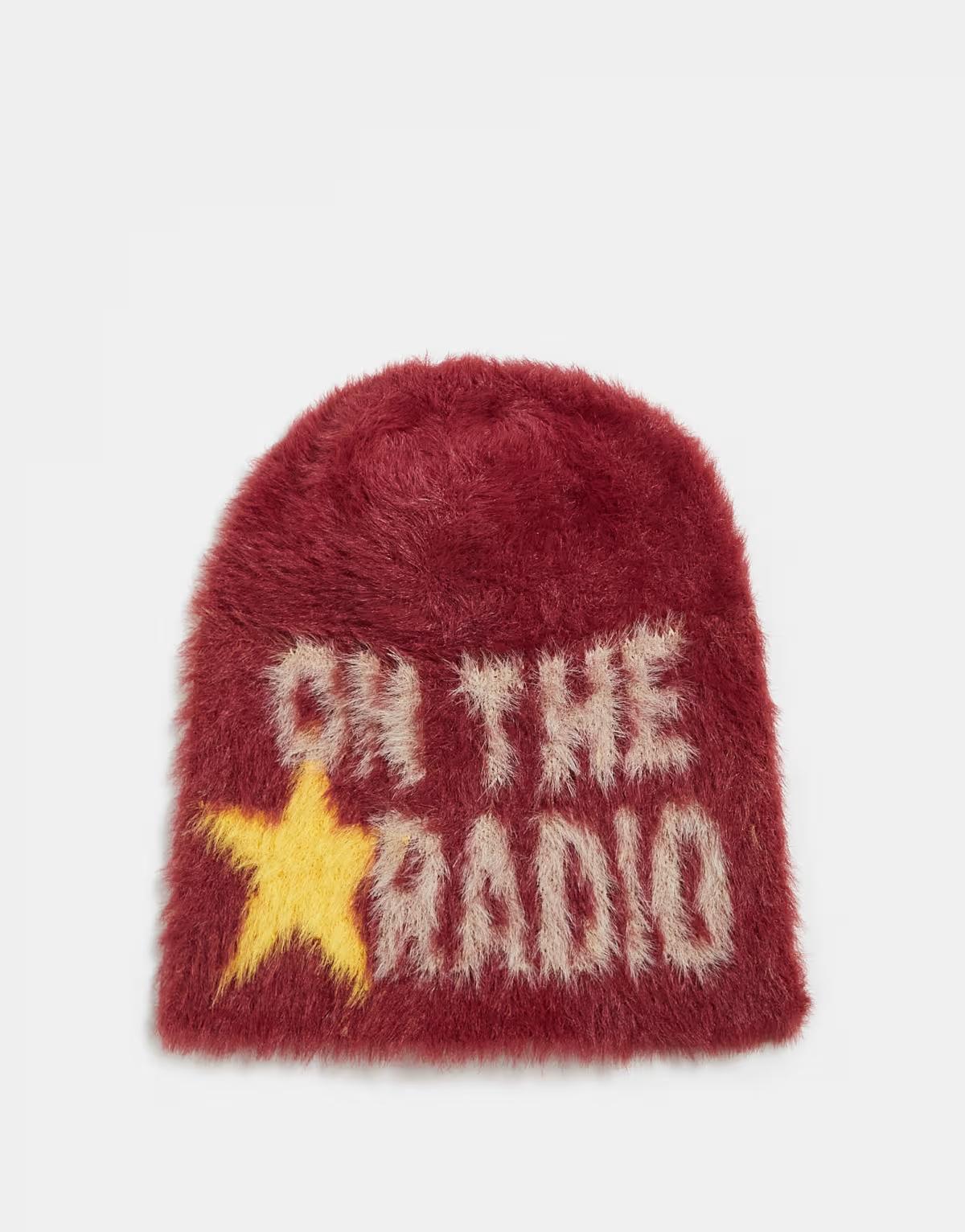 Reclaimed Vintage unisex fluffy beanie with stars in red