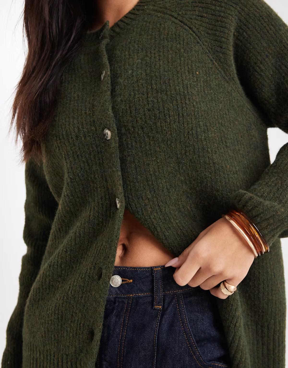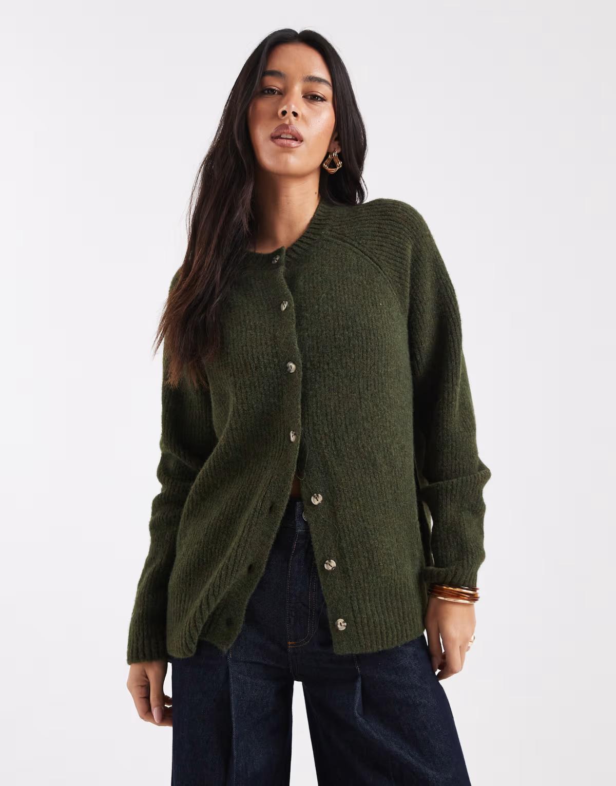 ASOS DESIGN oversized cardigan with wool in khaki