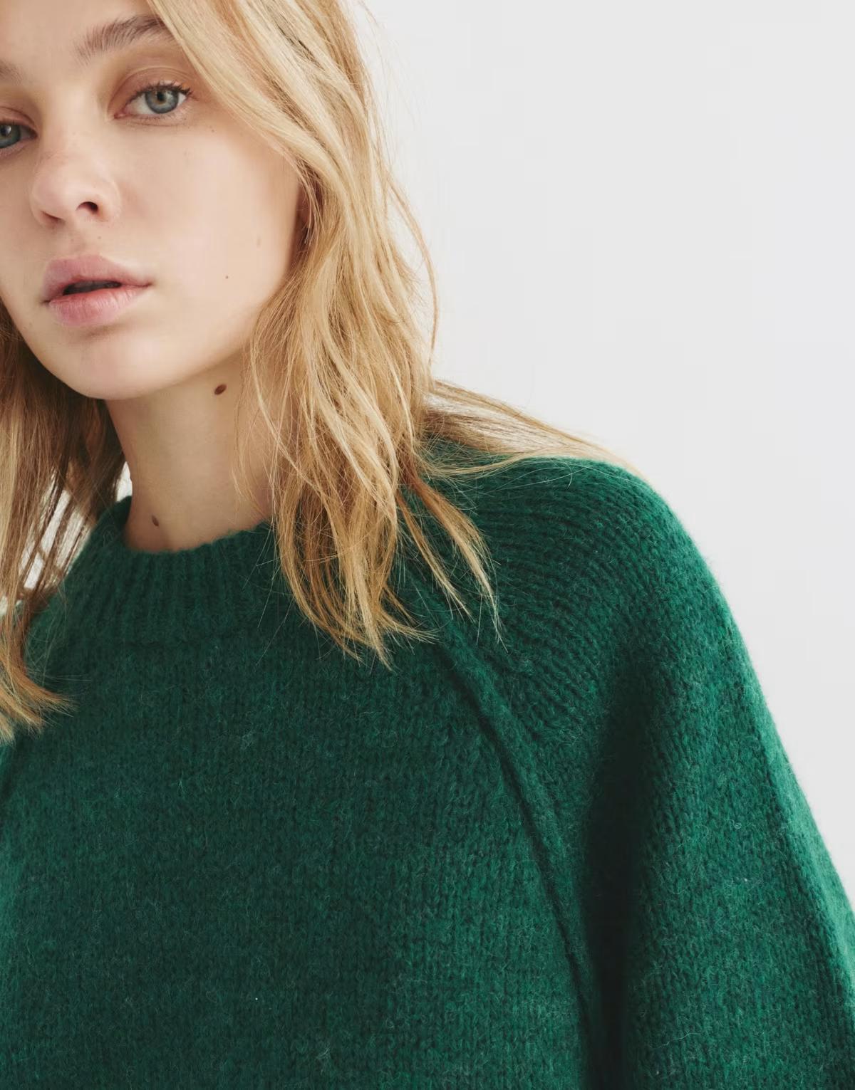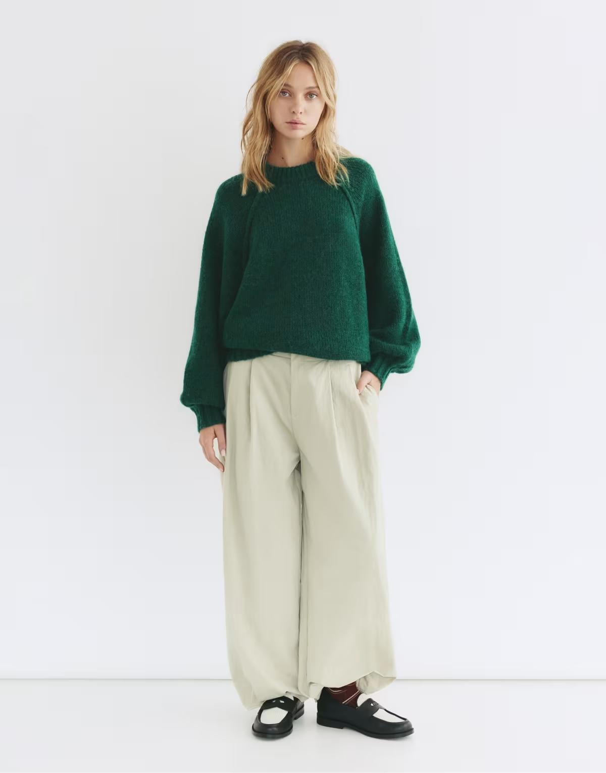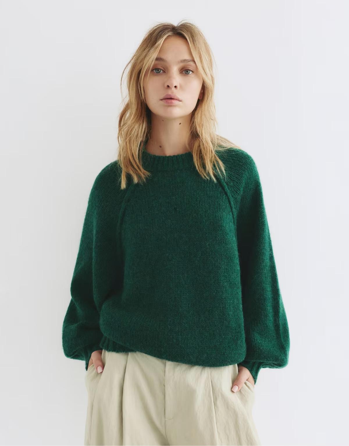 Pull&Bear Knit sweater with voluminous sleeves in bottle green