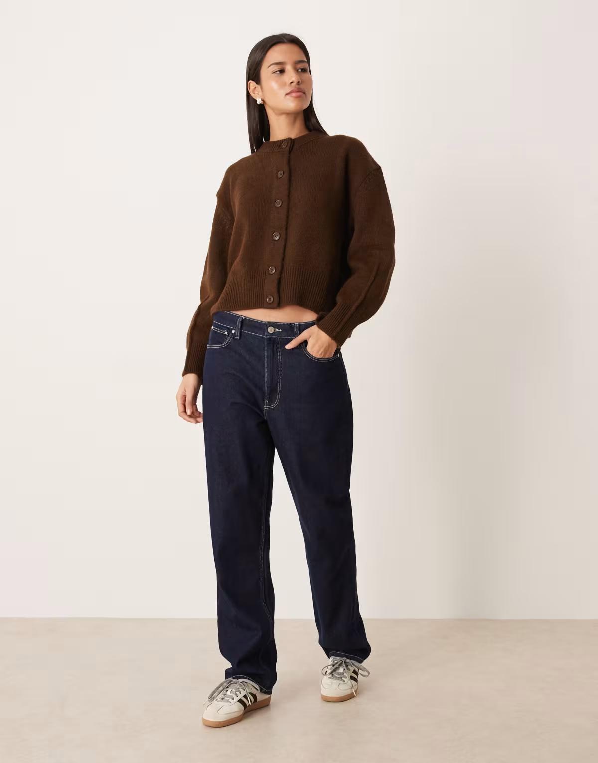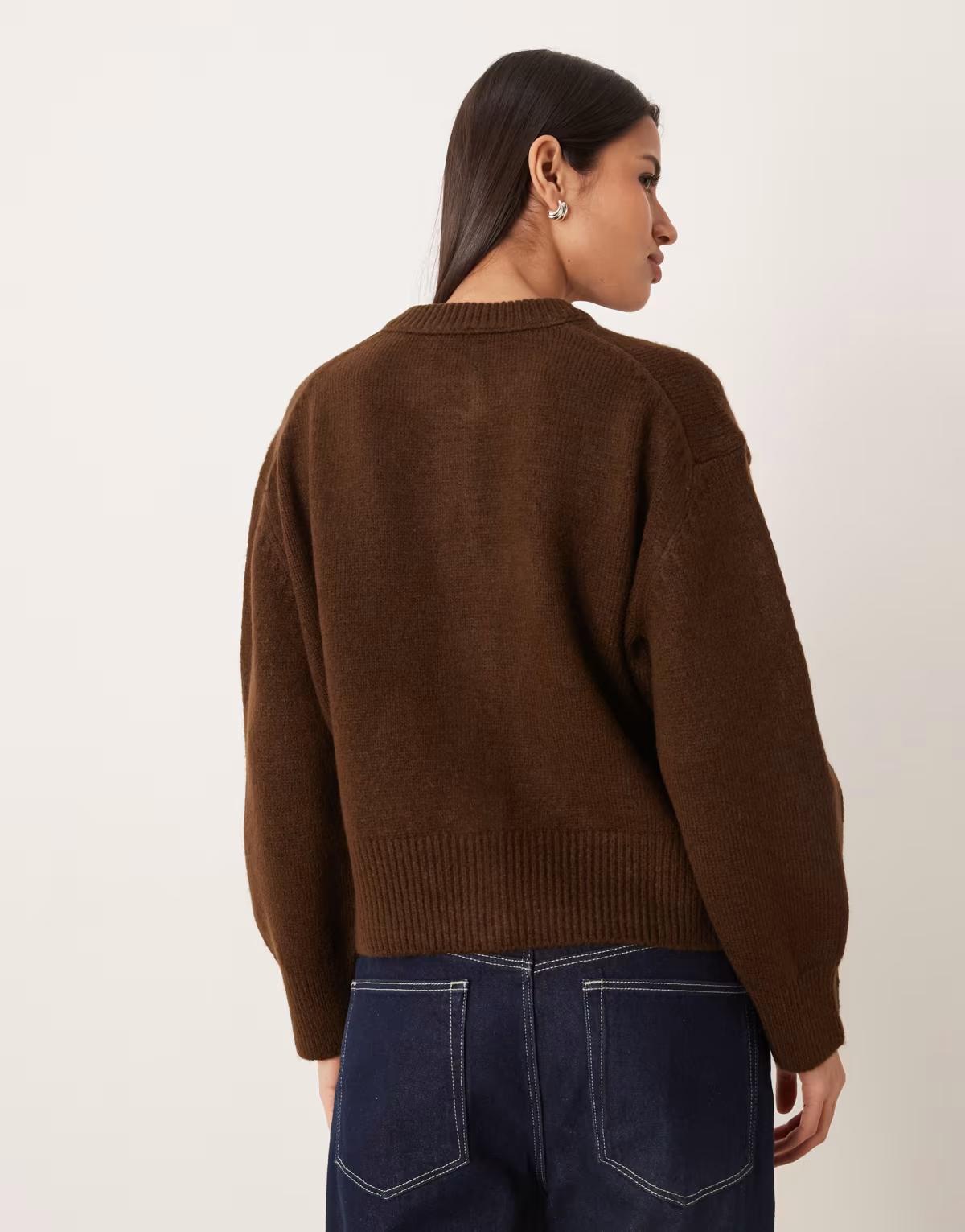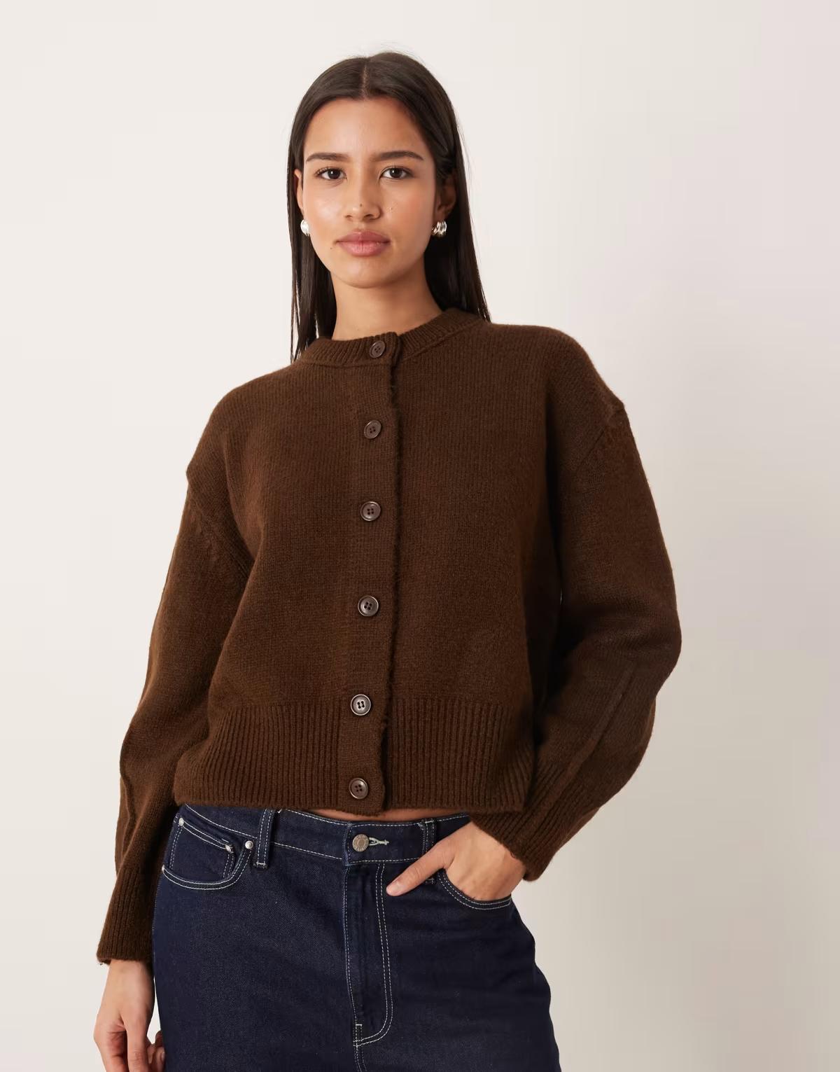 ASOS DESIGN boxy crew neck cardigan with side split detail in chocolate