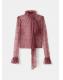 Confeccionada en tejido de encaje, esta prenda presenta un diseño recto con cuello gorguera y manga larga con volante en los puños. Incluye un lazo en el cuello y cierre de cremallera posterior. Lleva forro interior