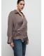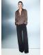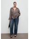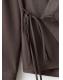 Confeccionada en tejido satinado, esta prenda presenta un diseño recto con cuello camisero cruzado. Las mangas largas tienen puños abotonados y el cierre es mediante lazo. Disponible en talla Plus