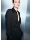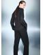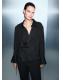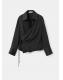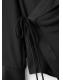 Confeccionada en tejido satinado, esta prenda presenta un diseño recto con cuello camisero cruzado. Las mangas largas tienen puños abotonados y el cierre es mediante lazo. Disponible en talla Plus