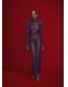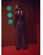 Confeccionada en tejido de encaje, esta prenda presenta un diseño recto con cuello alto adornado con un fular. Las mangas largas tienen puños abotonados y la espalda cuenta con un escote elegante. Cuenta con un pantalón a conjunto
