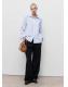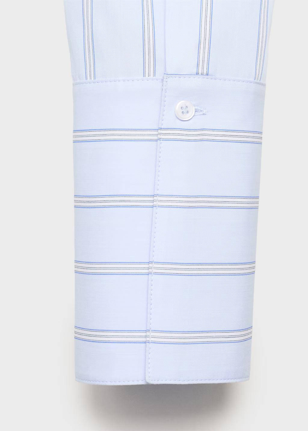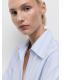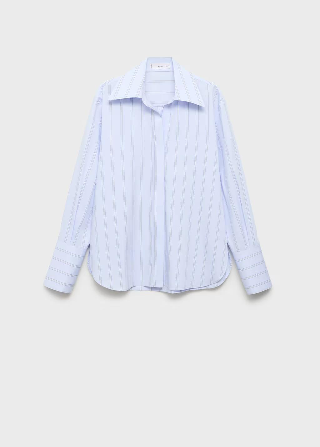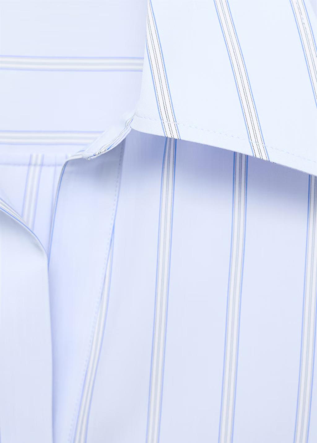 Confeccionada en tejido mezcla de algodón, esta prenda presenta un diseño recto con rayas. Incluye un cuello camisero con solapas amplias. La manga larga tiene puños abotonados y el cierre delantero es de botones ocultos con tapeta