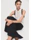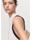 Con un diseño recto, esta prenda presenta un elegante cuello drapeado y tirantes anchos con vivos en contraste. Cierre de cremallera en la parte posterior