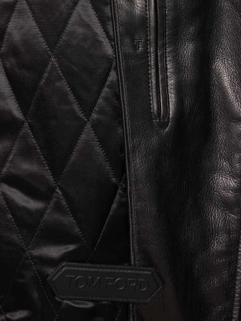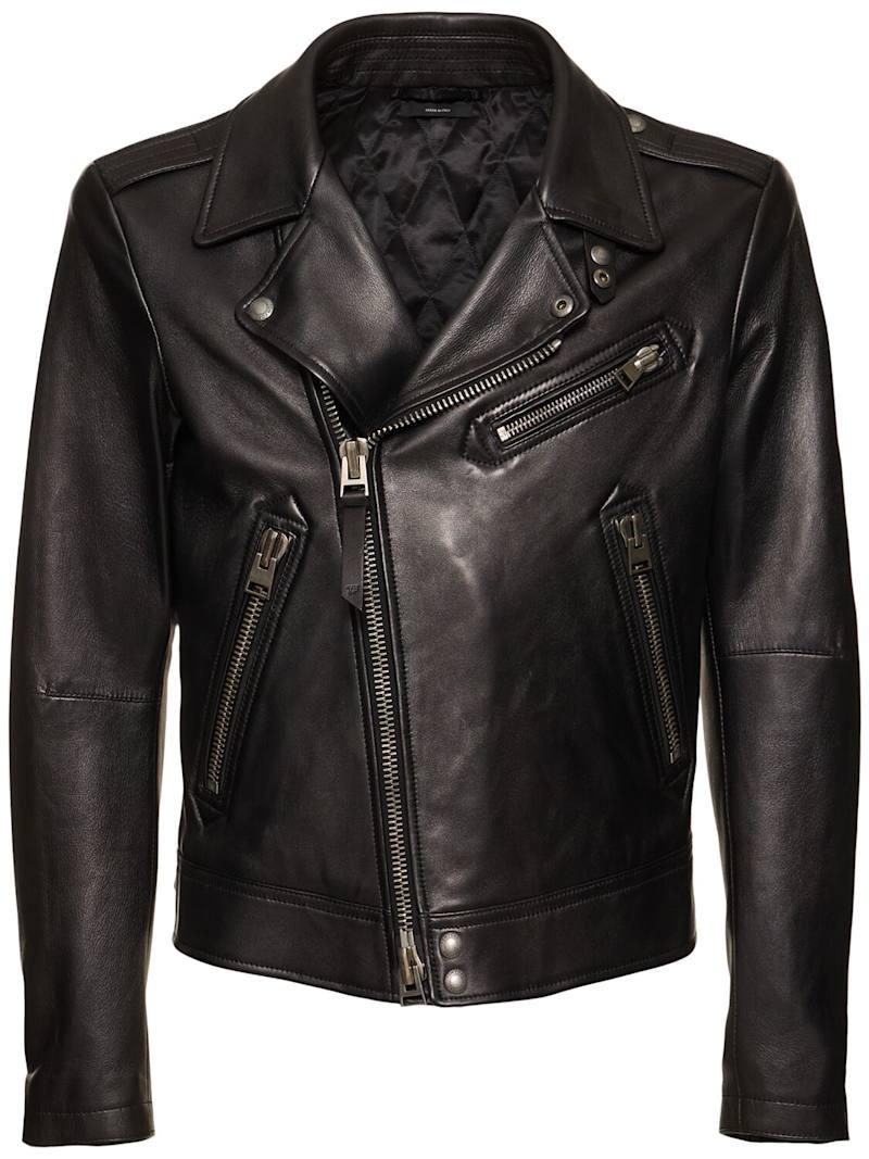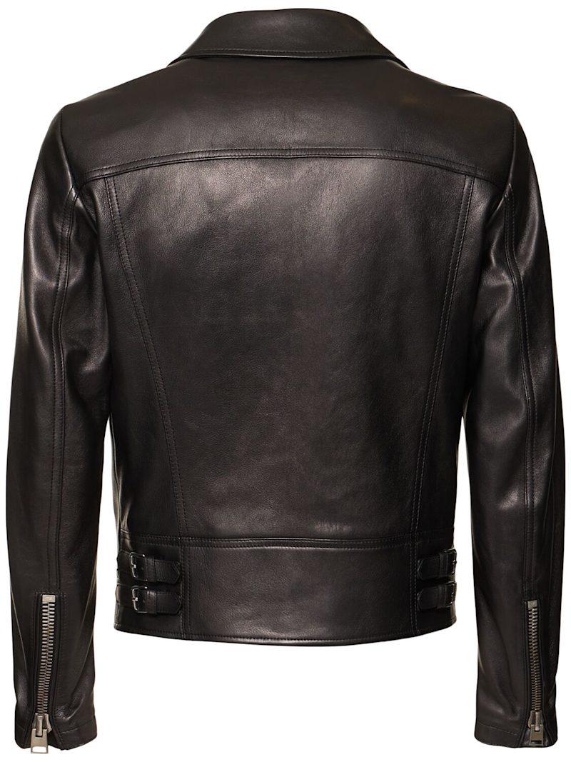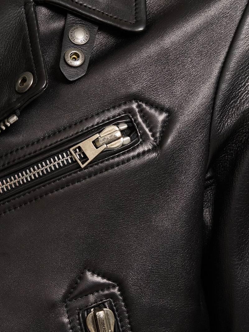 纳帕皮不对称机车夹克 - 黑色 - 男士 - Tom Ford - 正面拉链开合.