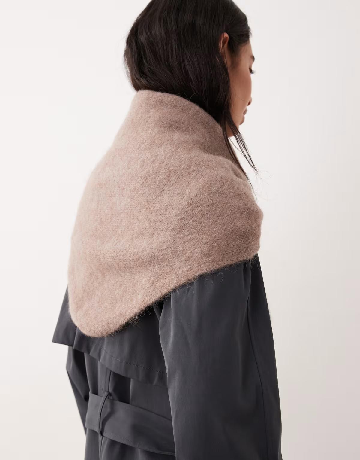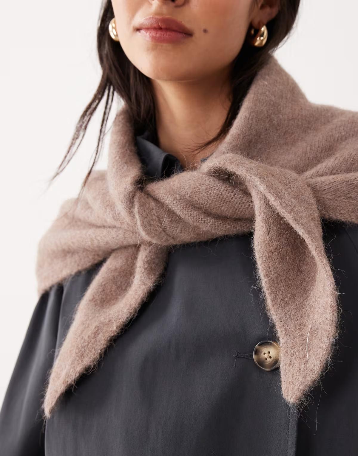 ASOS DESIGN alpaca wool mix knitted triangle scarf in beige
