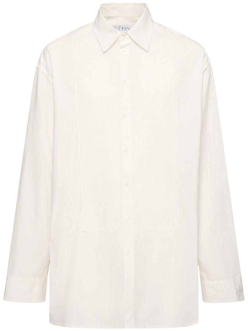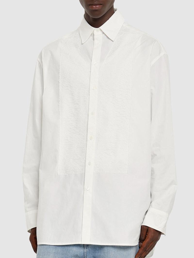 蕾丝装饰衬衫 - 白色 - 男士 - JW Anderson - 正面纽扣开合.