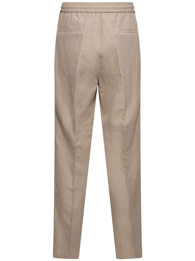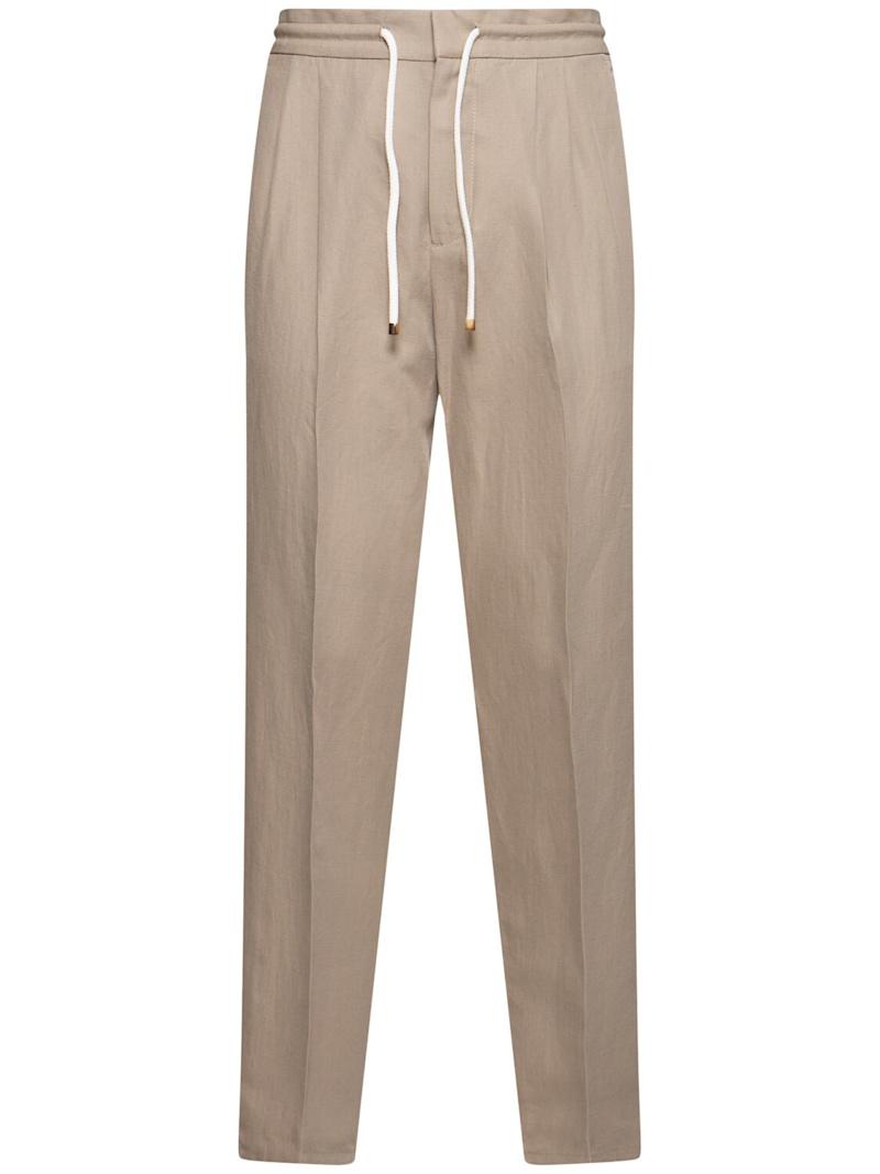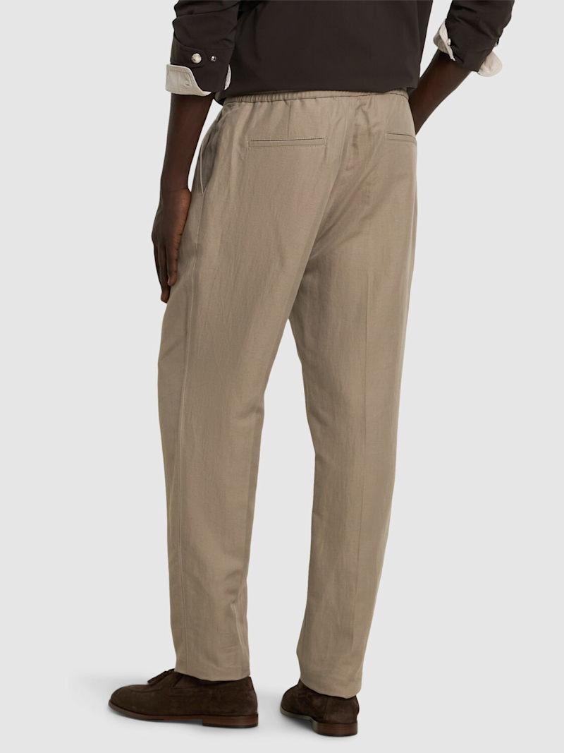 亚麻&棉裤子 - 卡其色 - 男士 - Brunello Cucinelli - 抽绳松紧腰头.