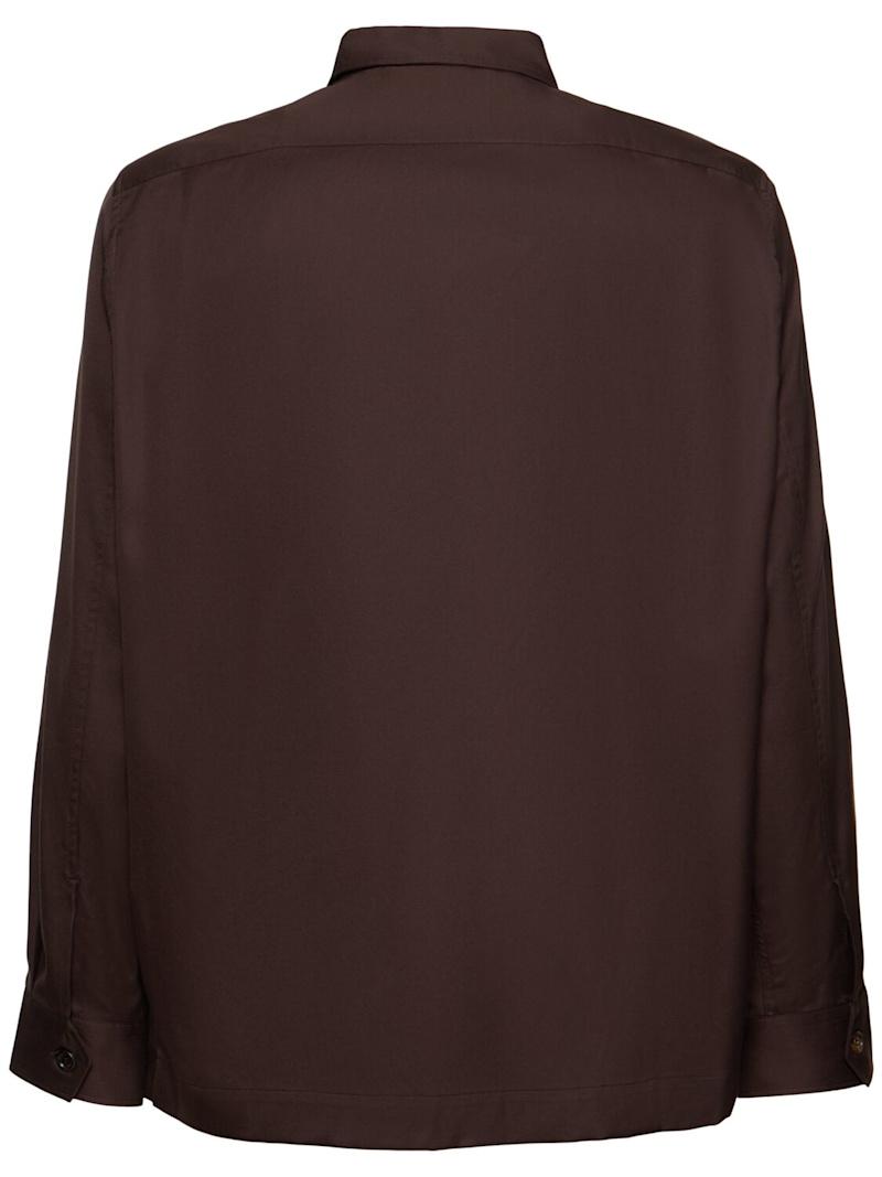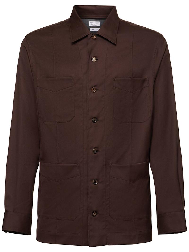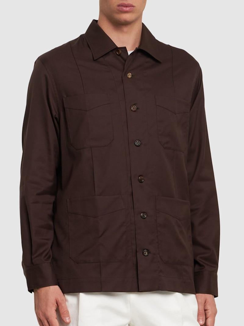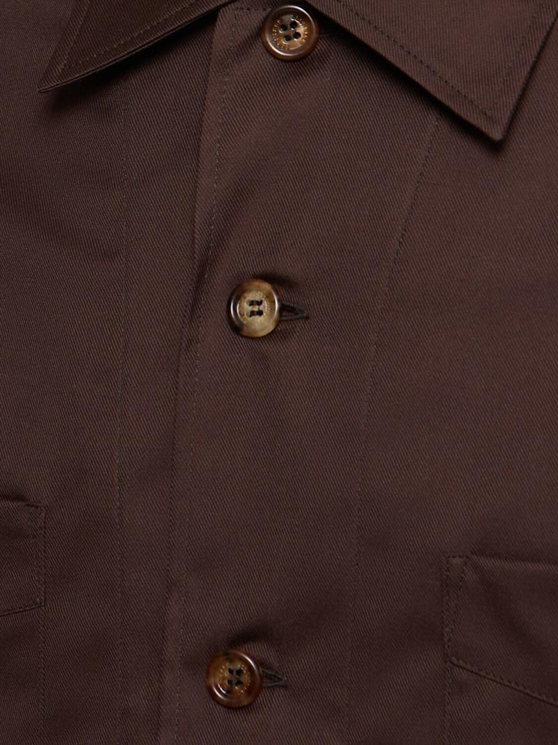 棉质斜纹大廓型衬衫 - 深棕色 - 男士 - Brunello Cucinelli - 正面纽扣开合.