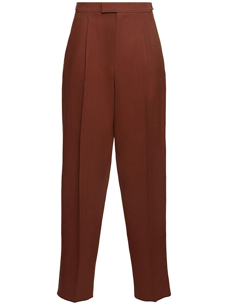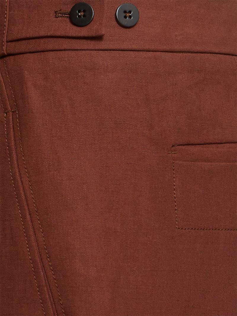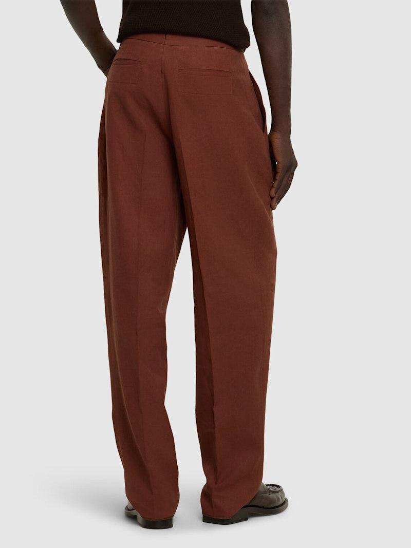 亚麻裤子 - 棕色 - 男士 - Zegna - 隐藏式正面粘扣开合.
