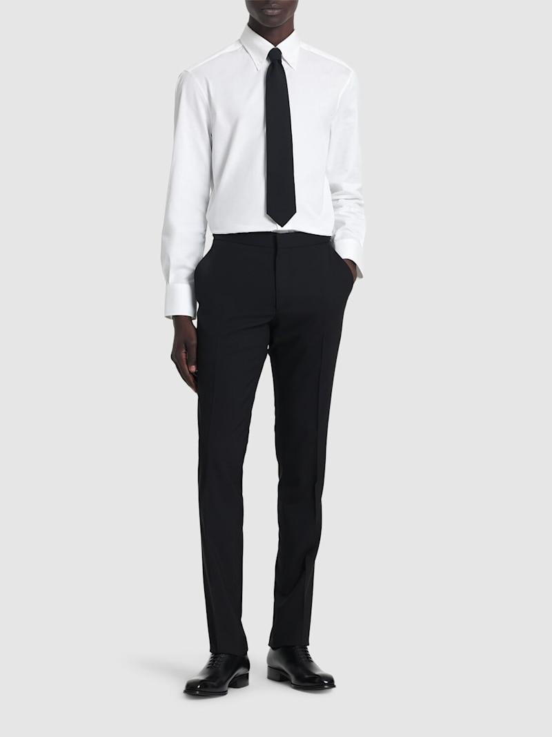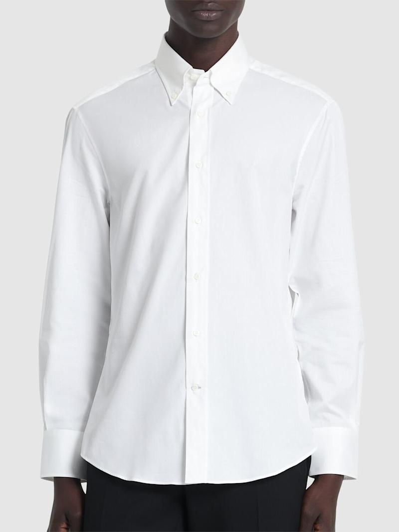 棉质斜纹扣领衬衫 - 白色 - 男士 - Brunello Cucinelli - 正面纽扣开合.