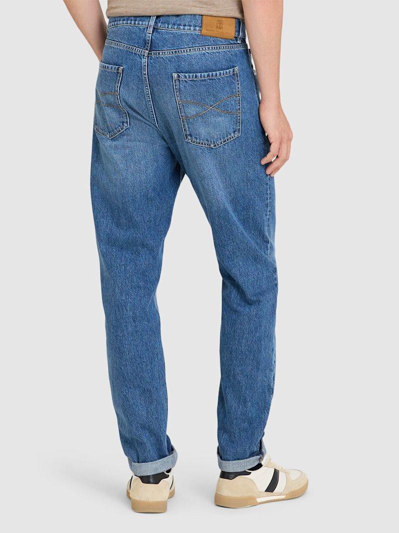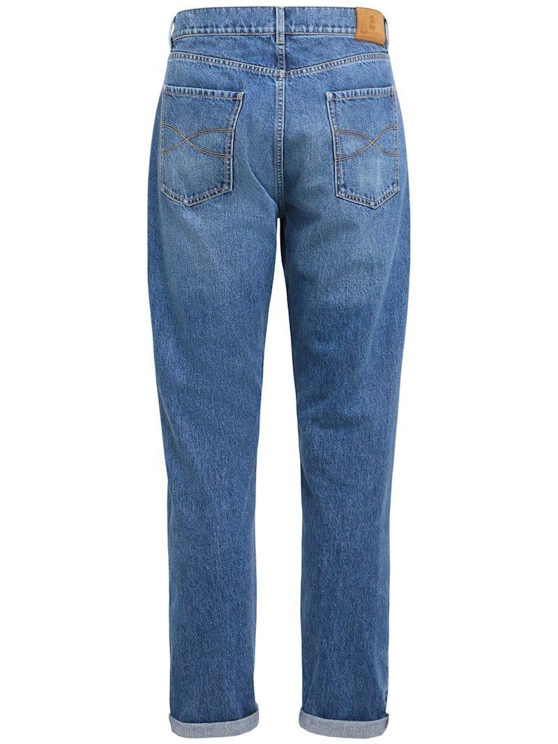 棉质牛仔裤 - Denim Medio - 男士 - Brunello Cucinelli - 正面隐藏式纽扣开合.